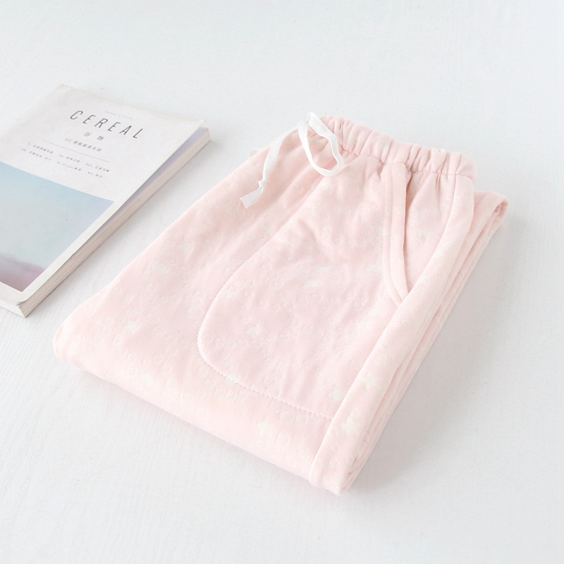 신상 여성용 가을 겨울 면 소재 홈웨어 바지 니트 두꺼운 에어 코튼 잠옷 따뜻하고 편안한 루즈핏 대형 사이즈