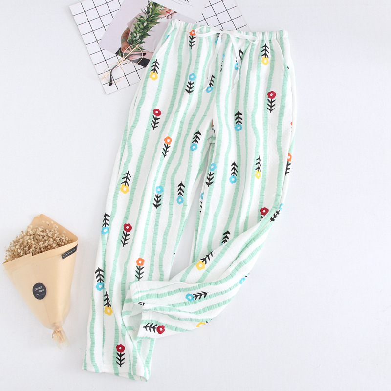 • 여성용 녹색 세로 스트라이프 플로럴 에어 코튼 싱글피스 팬츠