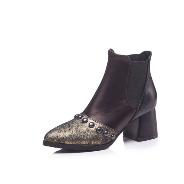 2018秋冬新款!英伦铆钉拼色女靴!百搭!