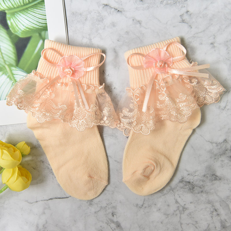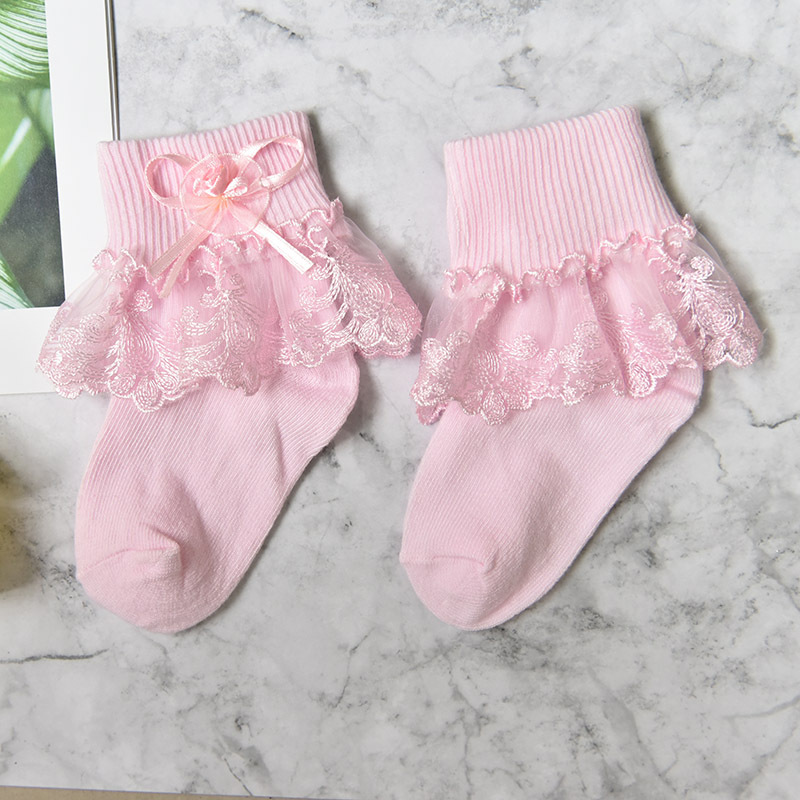 여자 레이스 양말 봄과 가을 진짜 면화 어린이 양말 단색 레이스 공주 양말 여자 아기 양말 도매스토어 가기