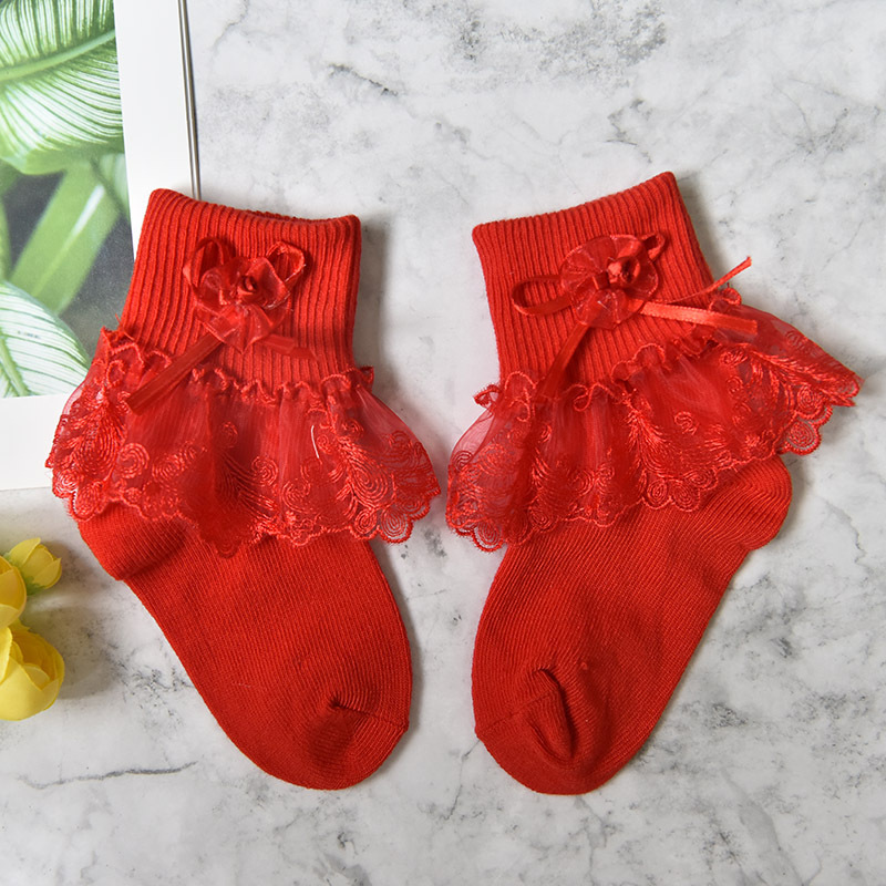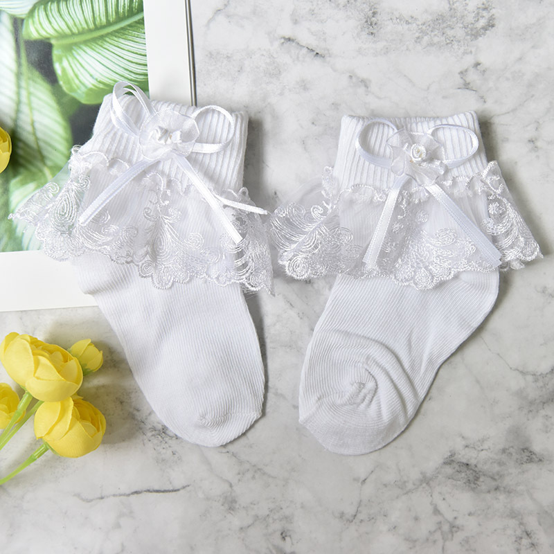 여자 레이스 양말 봄과 가을 진짜 면화 어린이 양말 단색 레이스 공주 양말 여자 아기 양말 도매