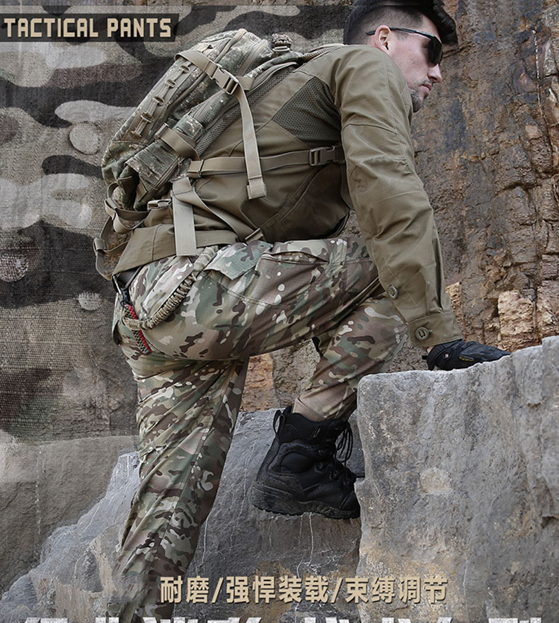 강력한 야외 의류 전술 바지 남성용 느슨한 멀티 포켓 트레이닝 바지 봄과 가을 멀티 포켓 위장 바지 크로스 보더스토어 가기