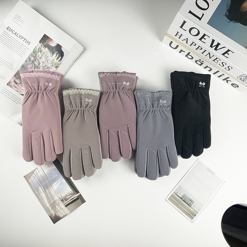 패션 달콤한 작은 모피 공 방풍 장갑 가을과 겨울 기모 방풍 따뜻한 승마 운전 숙녀 터치 스크린 장갑
