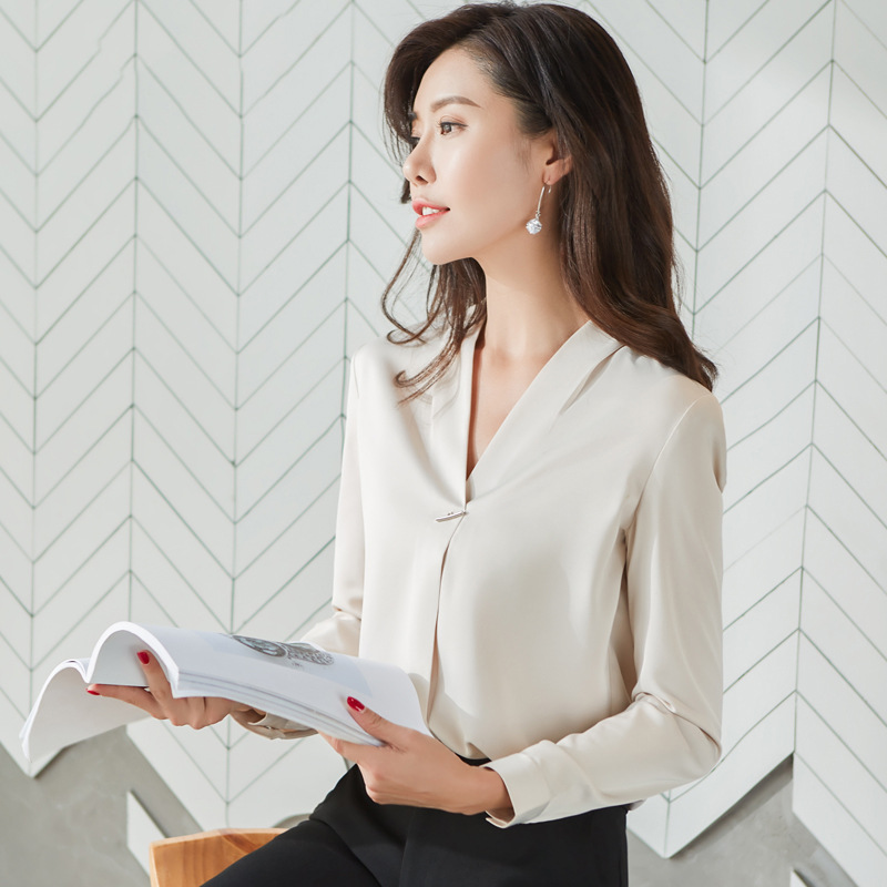 가을 새 쉬폰 긴팔 V-넥 셔츠 여성용 한국 스타일 우아한 슬림핏 슬리밍 펜던트 느슨한 패션 OL 셔츠스토어 가기