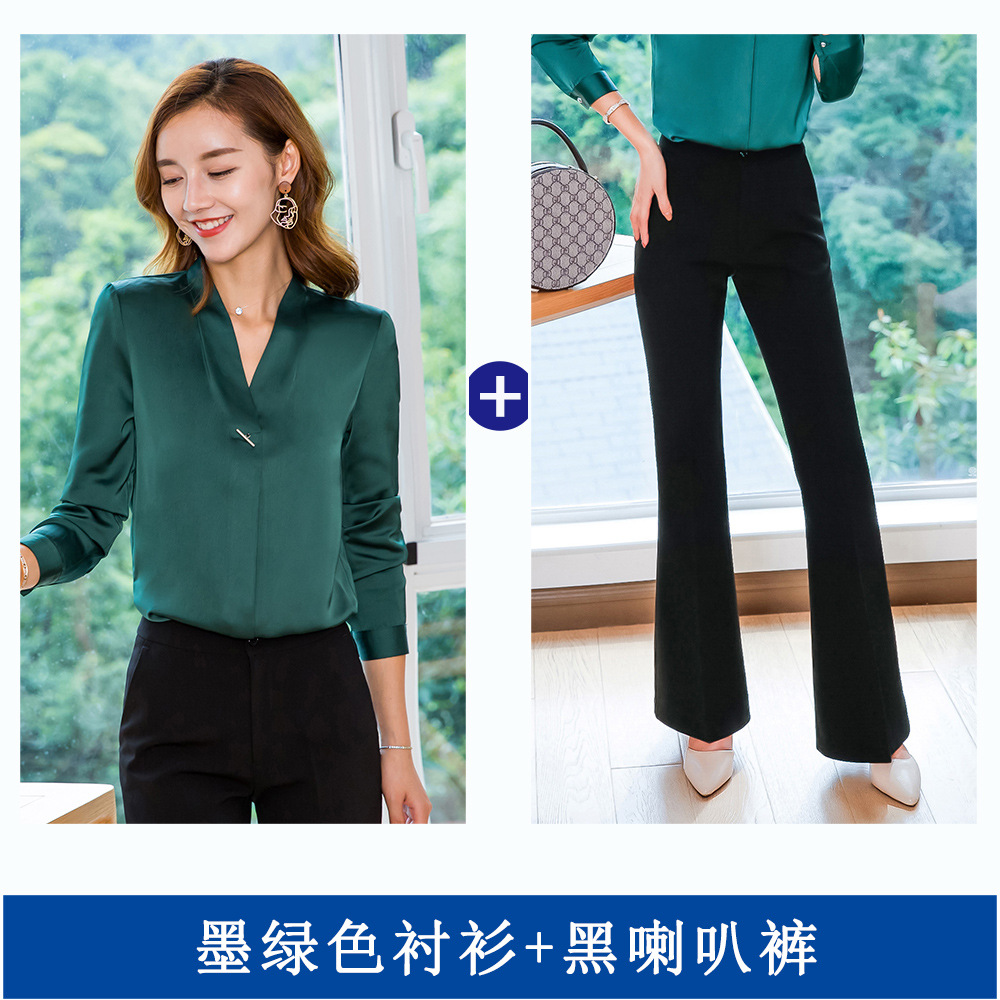 • 녹색 셔츠 + 8028 블랙 플레어 팬츠