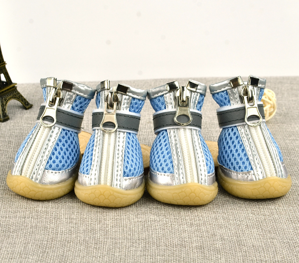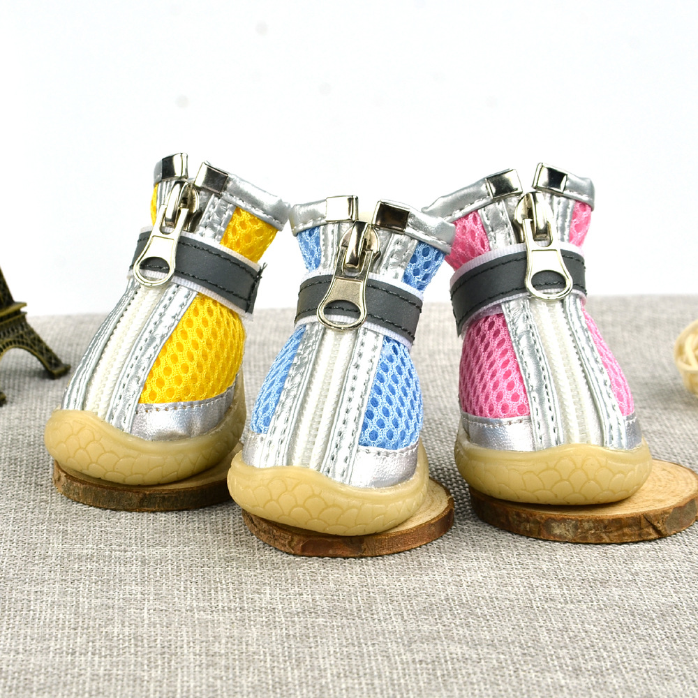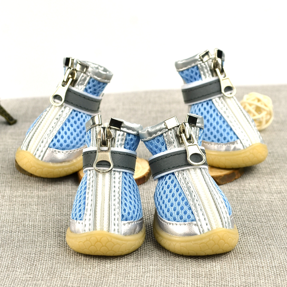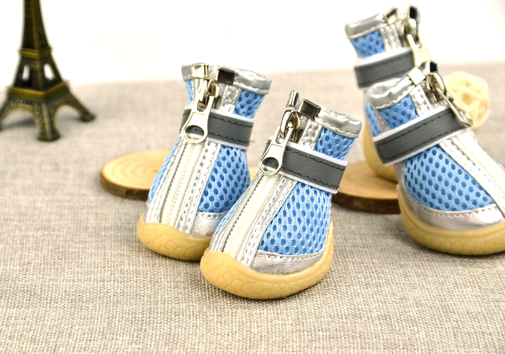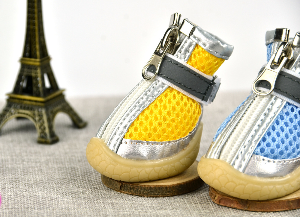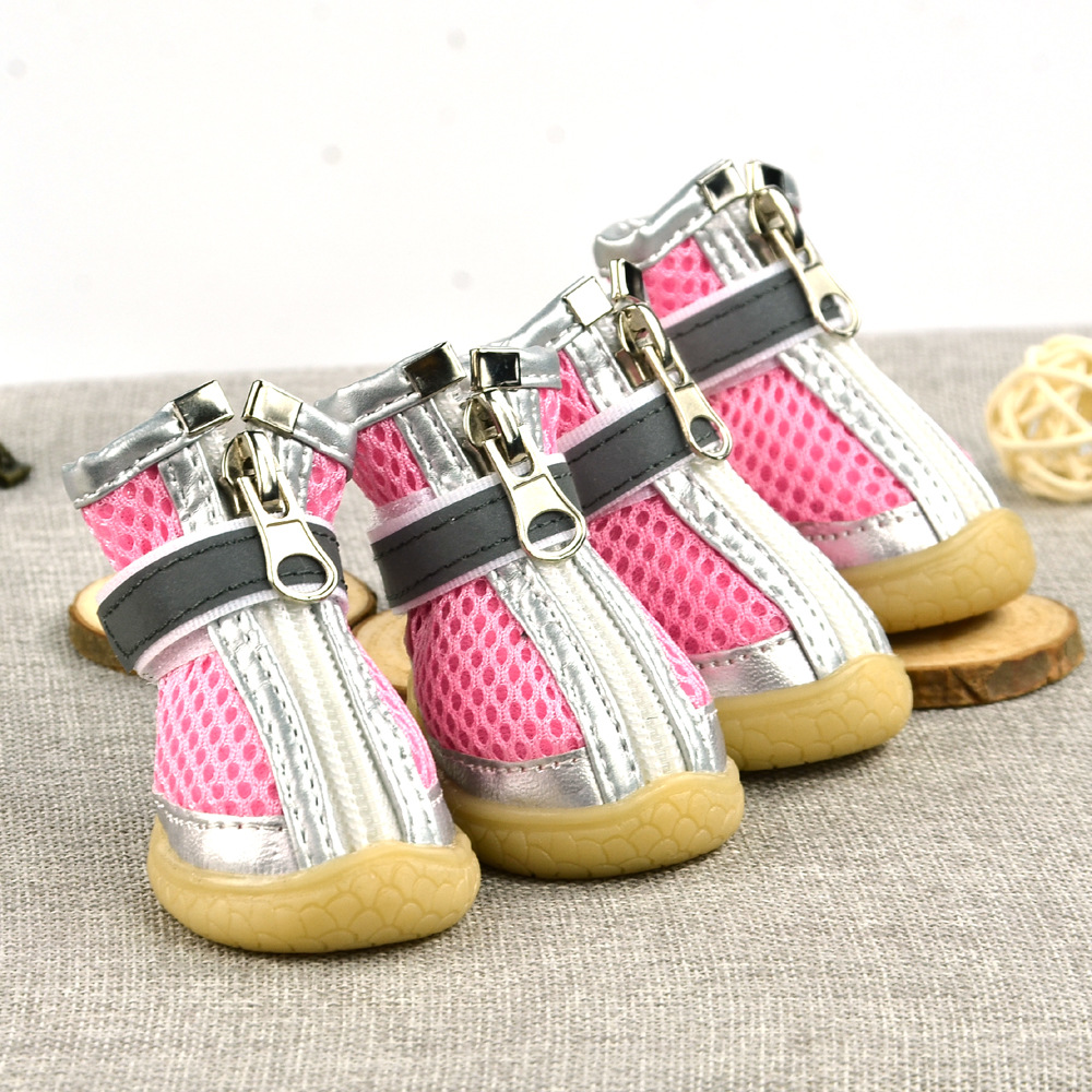 무료/무료 개 샌드위치 메쉬 개 신발 통기성 실버 가죽 장식 메쉬 애완 동물 신발