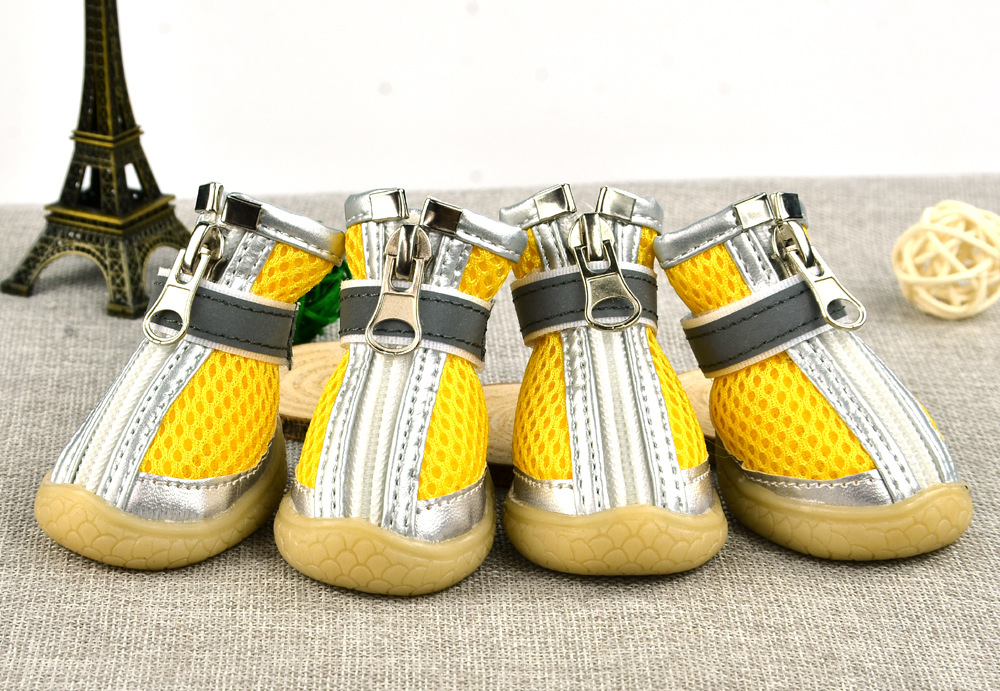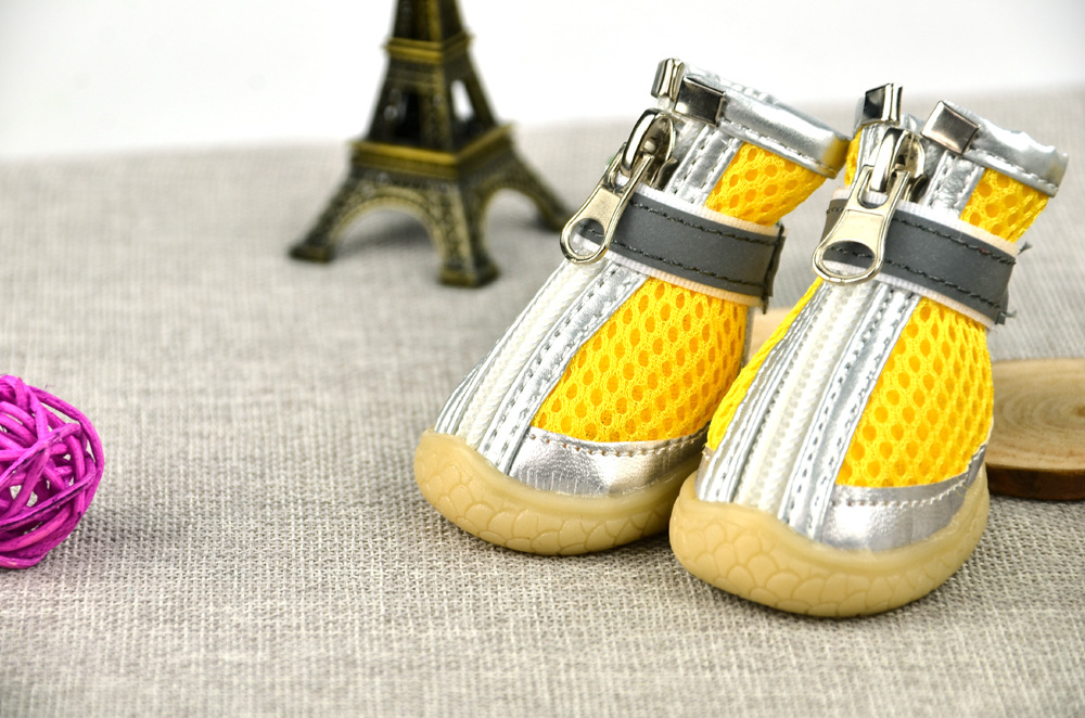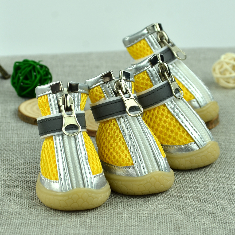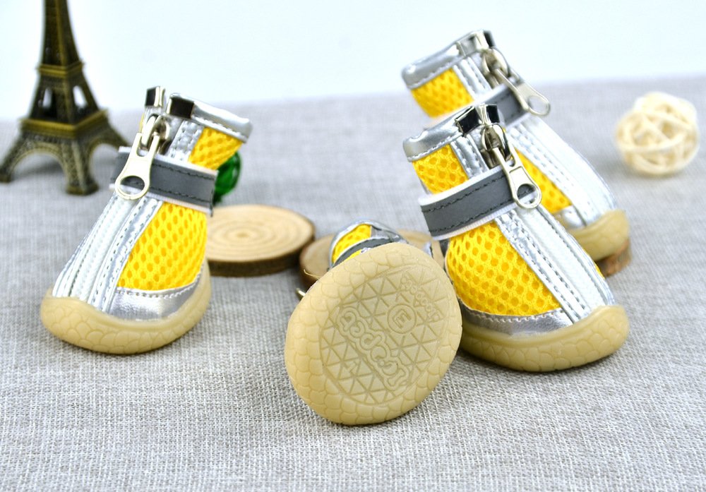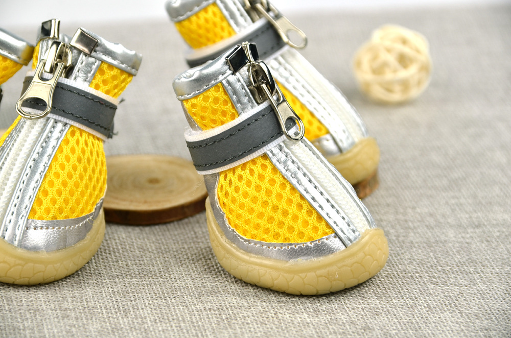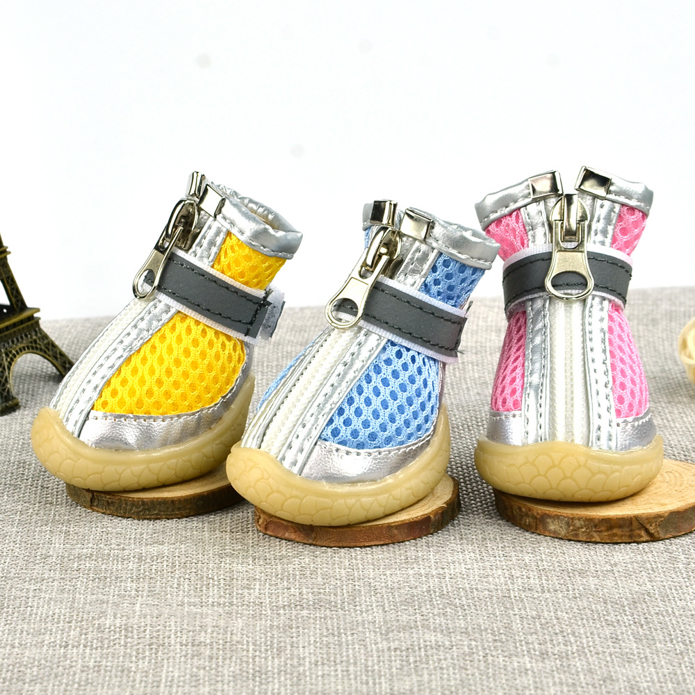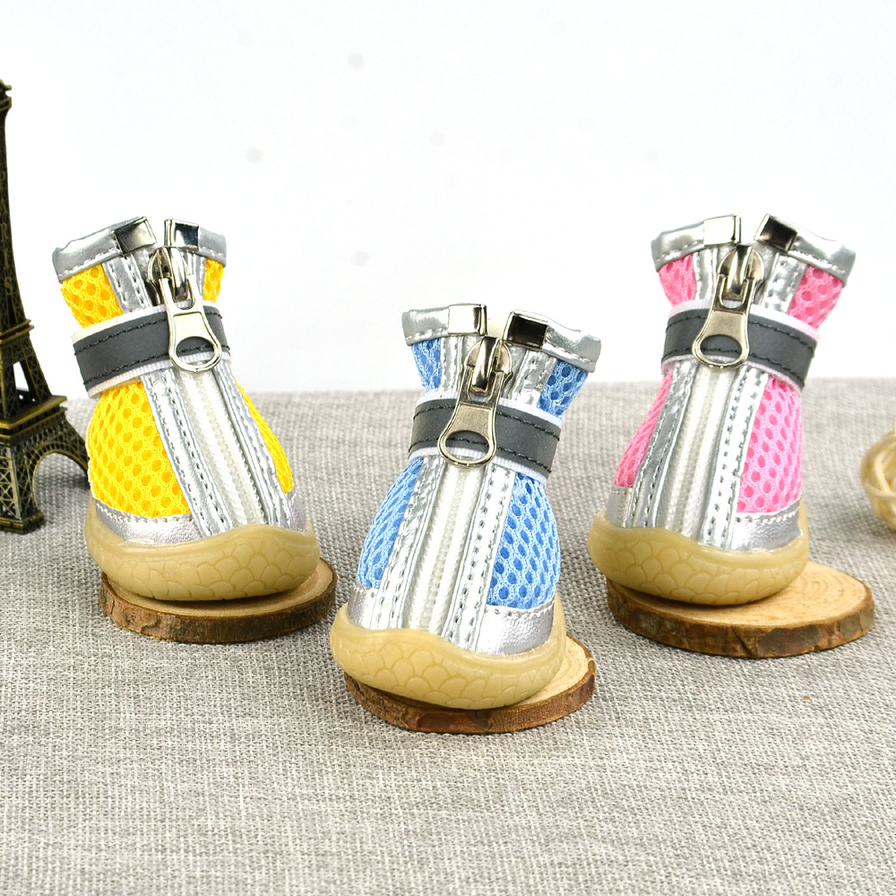 무료/무료 개 샌드위치 메쉬 개 신발 통기성 실버 가죽 장식 메쉬 애완 동물 신발