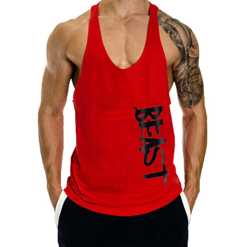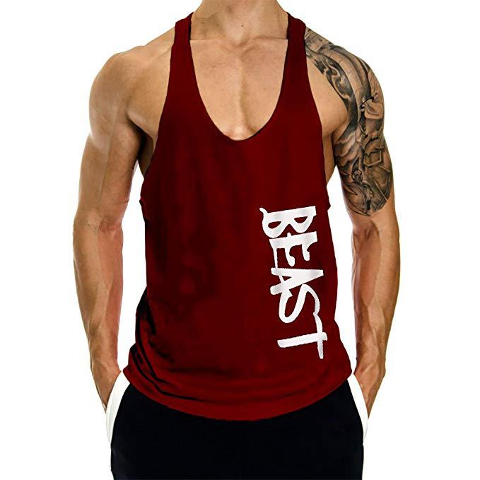 새로운 AliExpress 아마존 남성 보디 빌딩 피트니스 BEAST 스포츠 레터 프린트 조끼 면스토어 가기