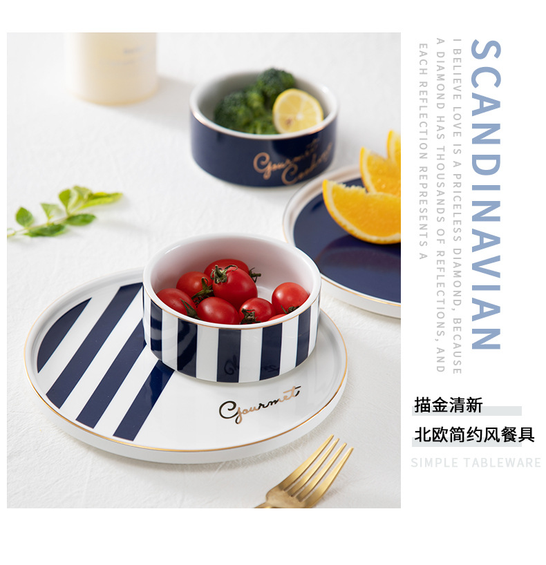 클리어런스 페로 나 세라믹 식기 손으로 그린 골드 기하학적 패턴 그릇 및 요리 북유럽 간단한 도자기 플레이트 모델 룸 장식
