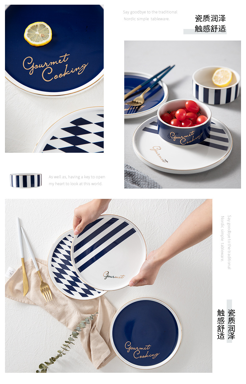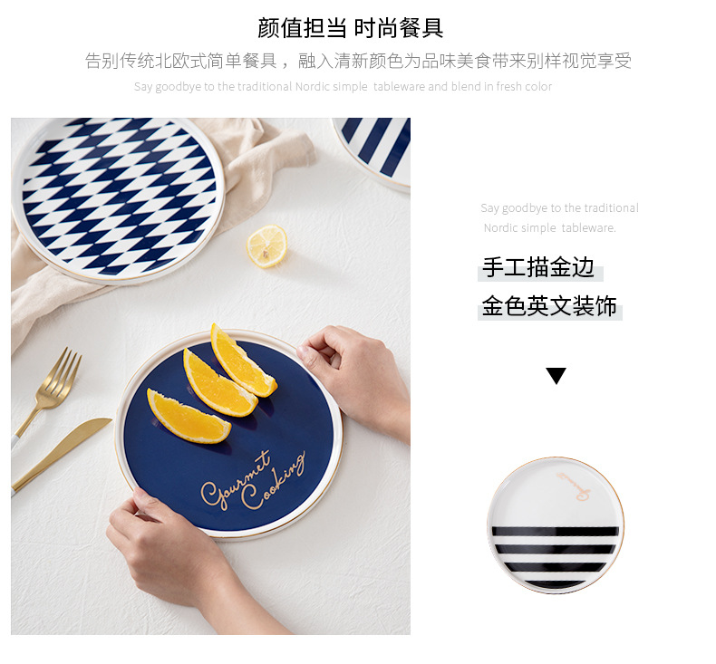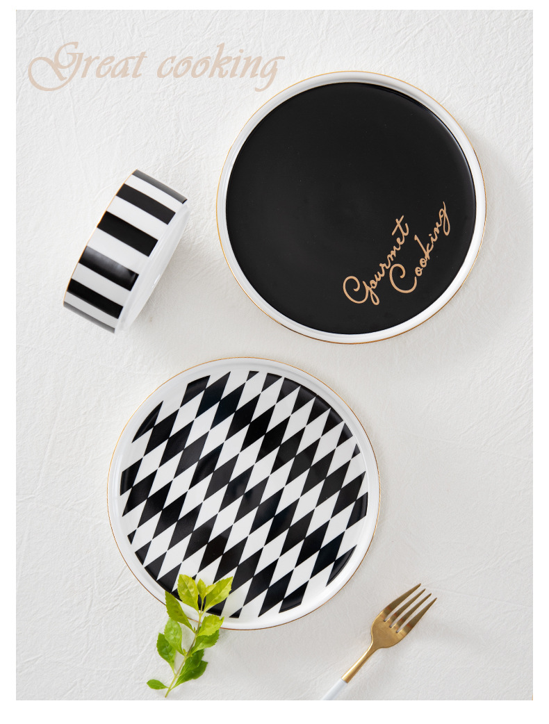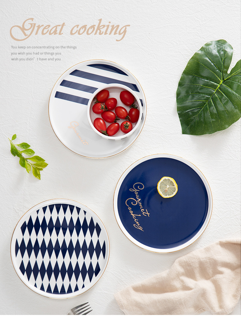 클리어런스 페로 나 세라믹 식기 손으로 그린 골드 기하학적 패턴 그릇 및 요리 북유럽 간단한 도자기 플레이트 모델 룸 장식스토어 가기