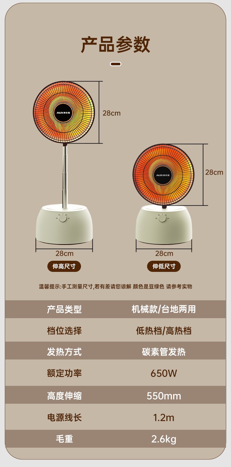 오크스 히터 소형 태양 가정용 전기 히터 흔들기 헤드 히터 탁상 오븐 전기 난방