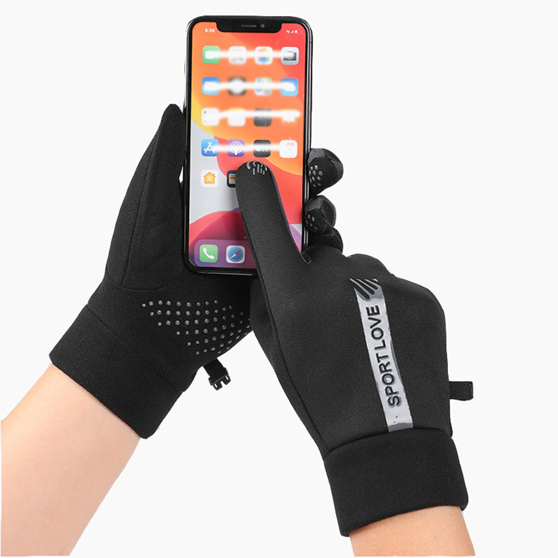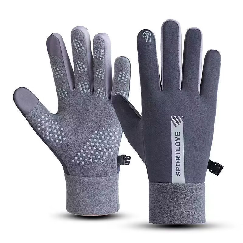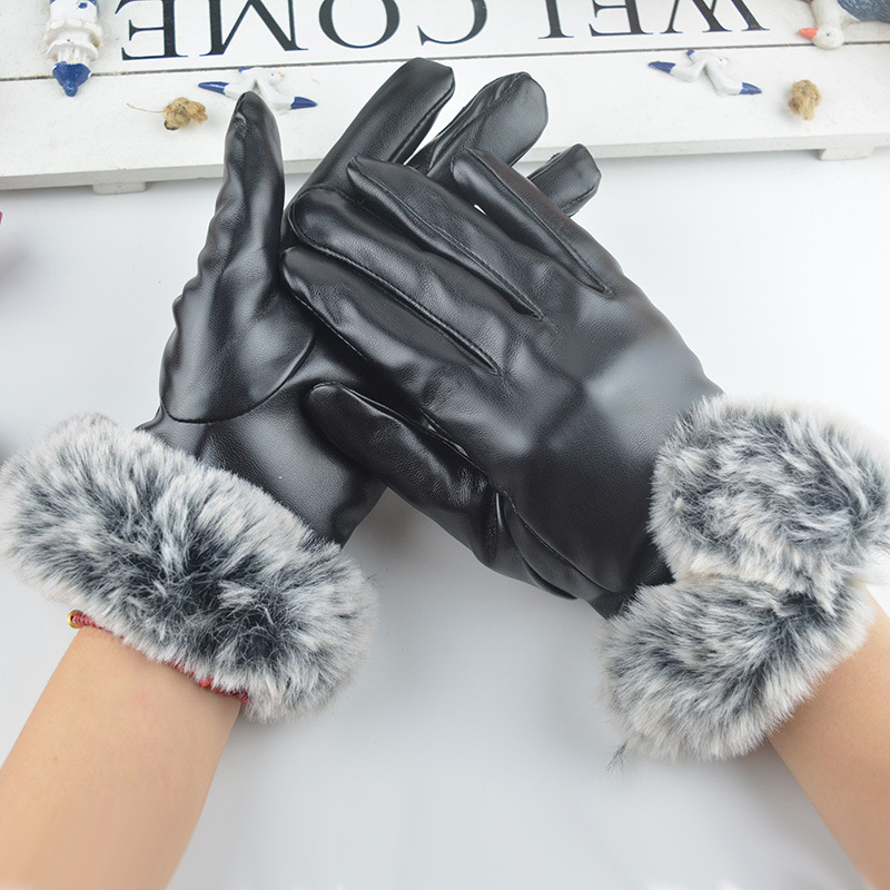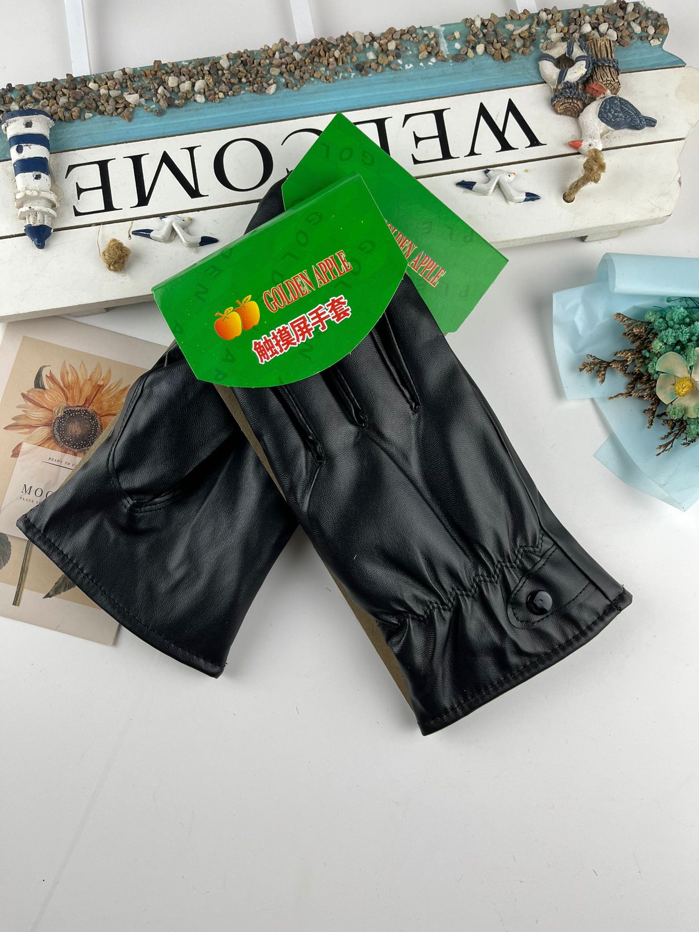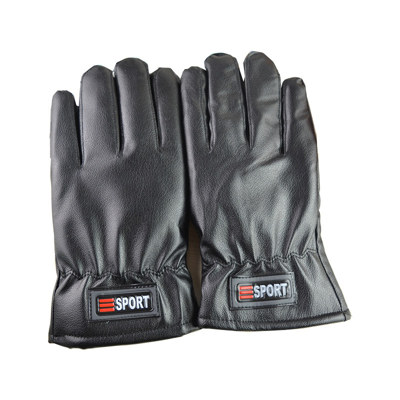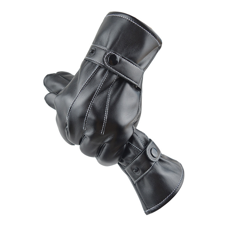 冬季男士经典三线皮手套 超柔加绒保暖触屏手套 PU松紧带扣手套