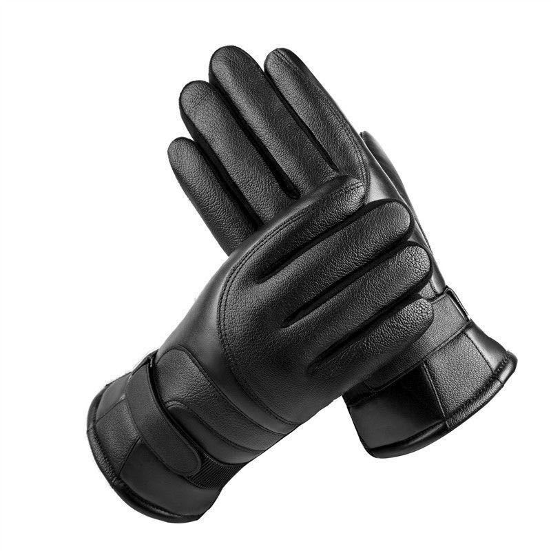 겨울 남자의 고전적인 3 줄 가죽 장갑 슈퍼 소프트 기모 따뜻한 터치 스크린 장갑 PU 탄성 버클 장갑