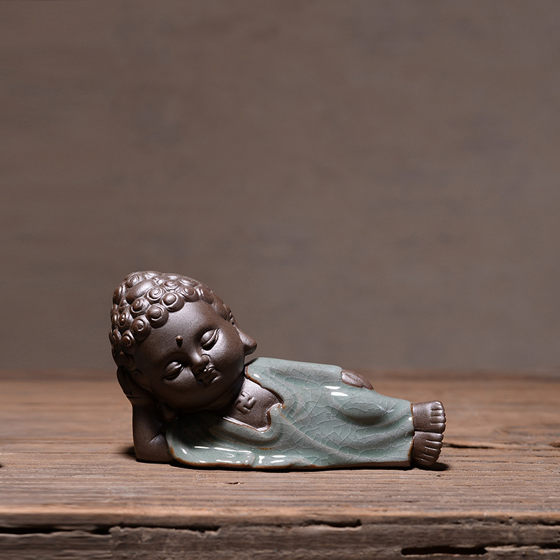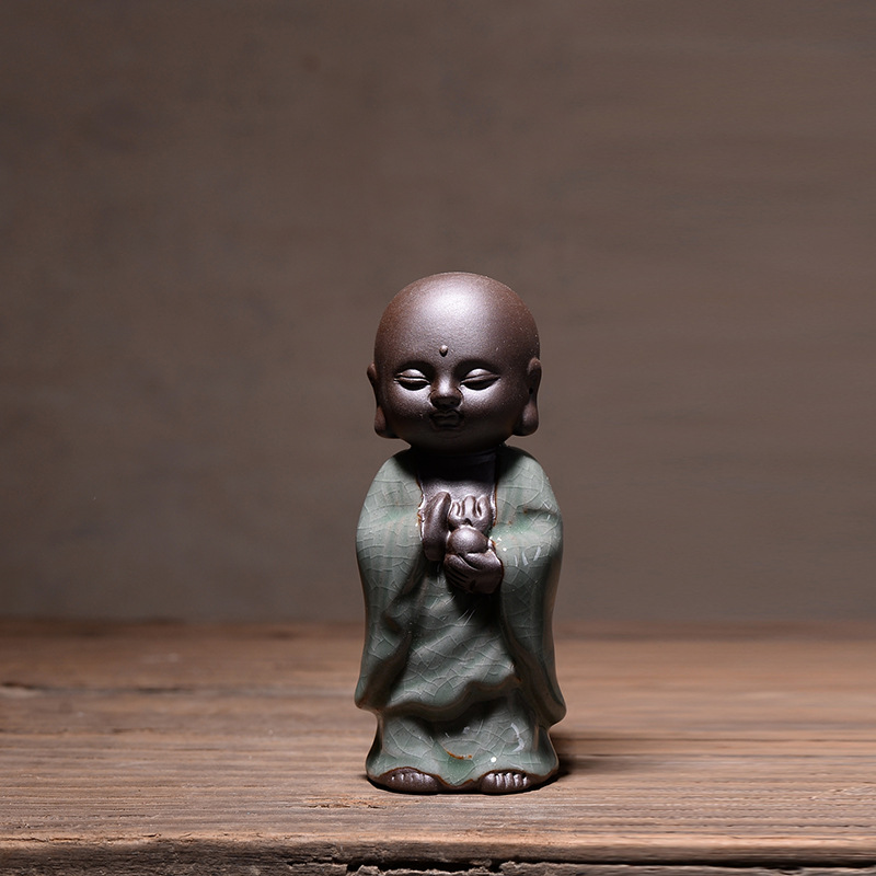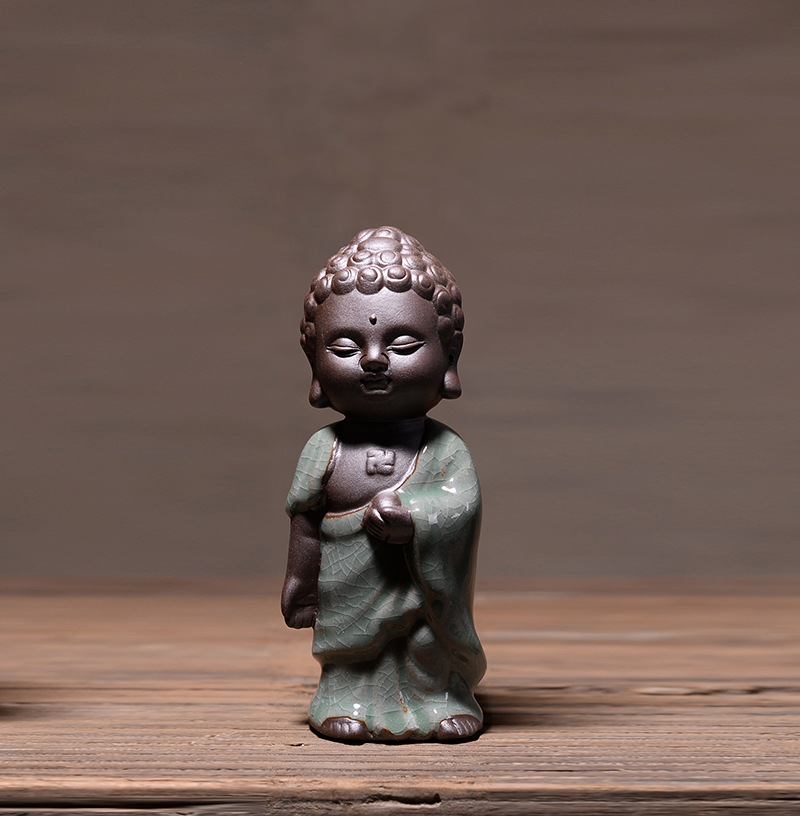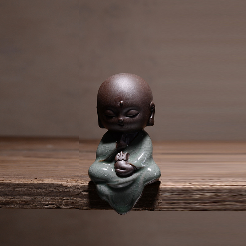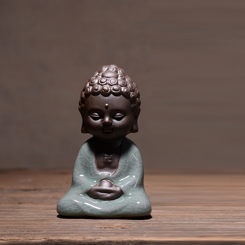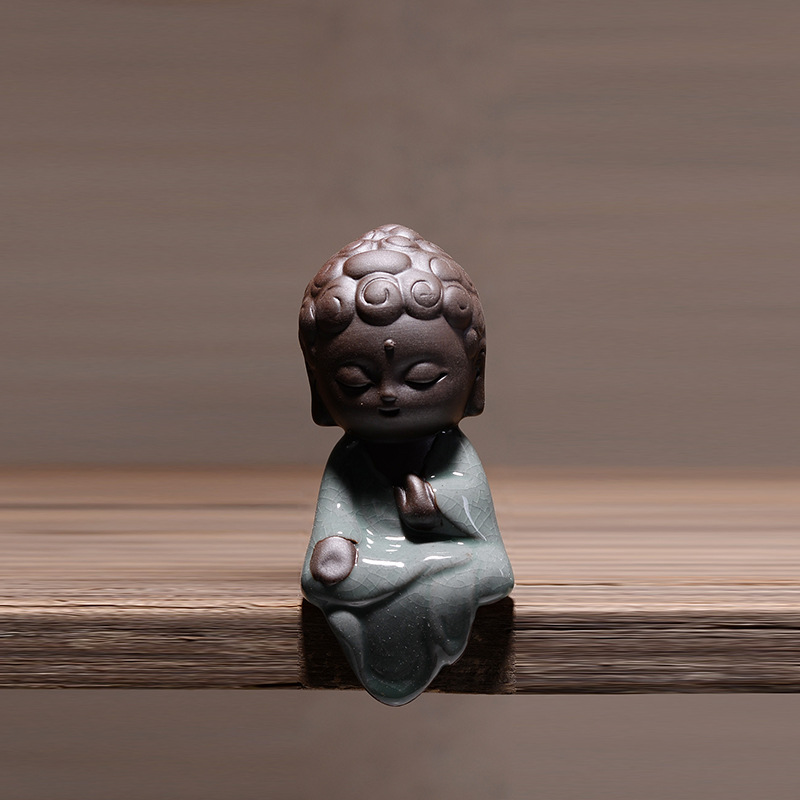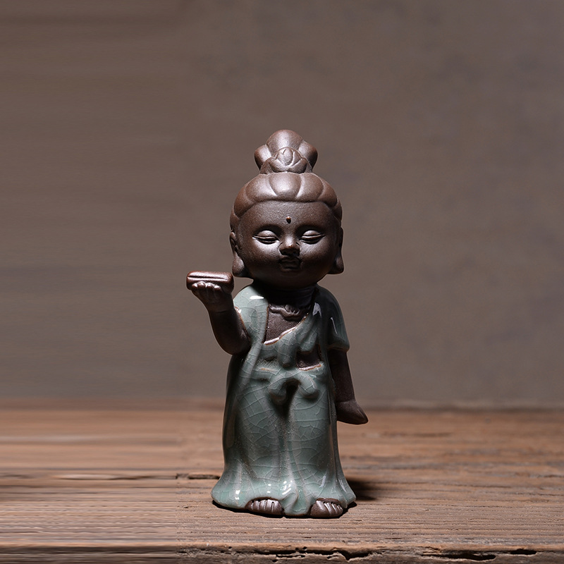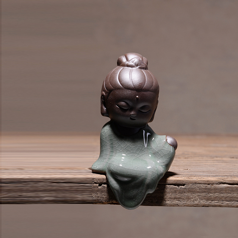 부티크 Ge Kiln 오프닝 조각은 개성을 높일 수 있습니다 쿵푸 차 애완 동물 장식품 작은 불상 타가타 관음 다육 질 화분 장식