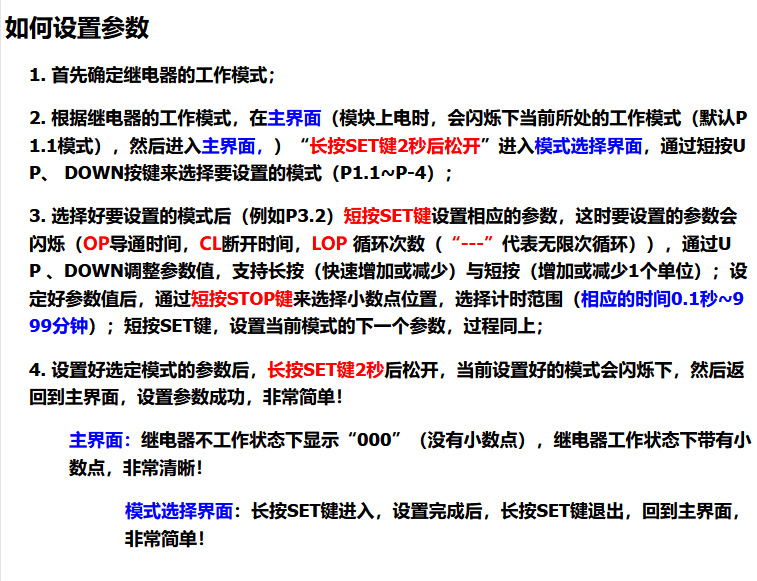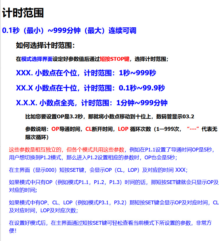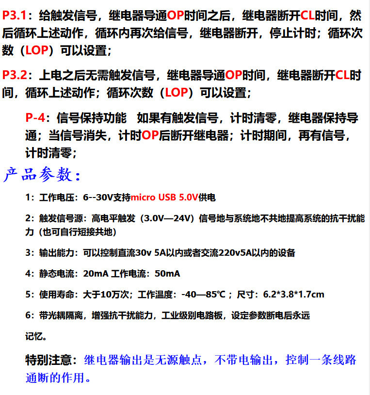 P-2:给触发信号,继电器断开CL时间之后,继电器导通OP时间,计时完成之后,断开继电器;