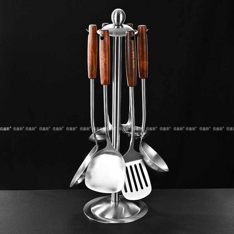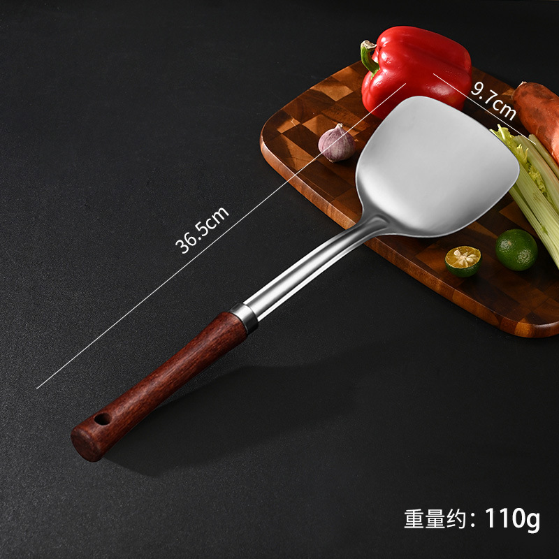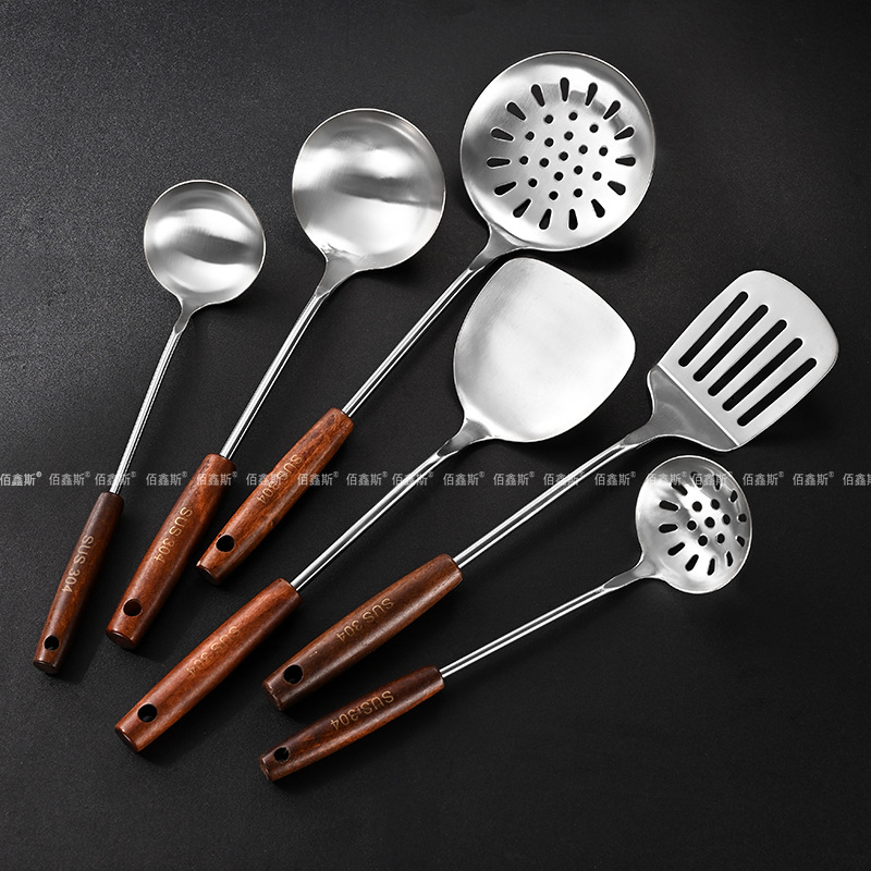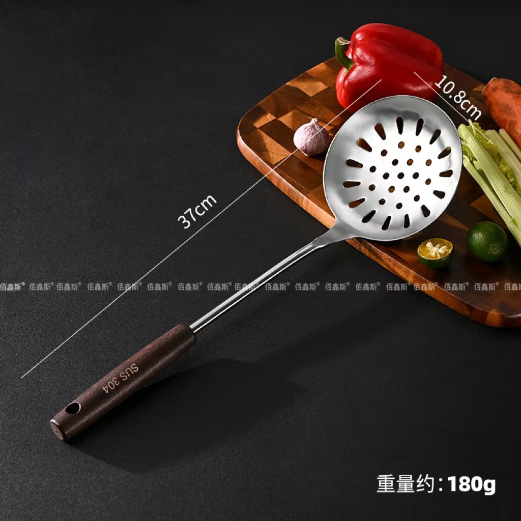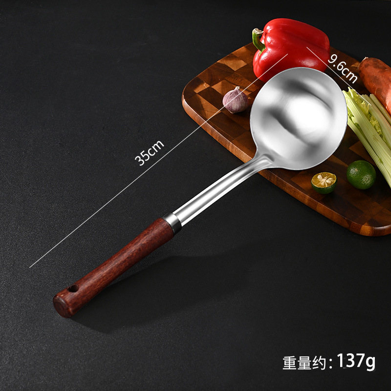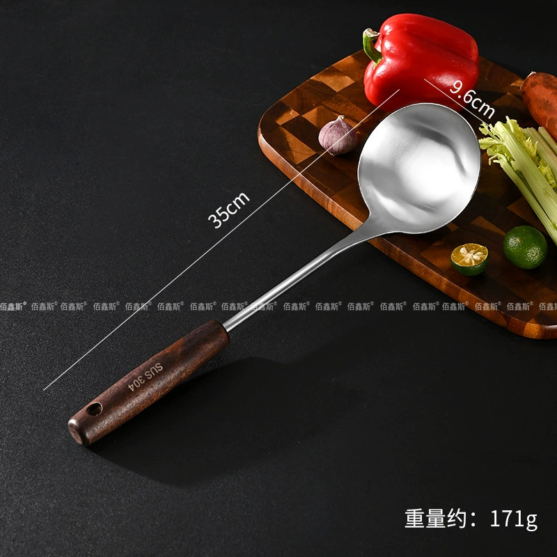 304 스테인레스 스틸 주걱, 가정용 나무 손잡이 주방기구, 고온 방지 소쿠리, 주걱, 주방기구 세트, 수프 스푼, 주방기구