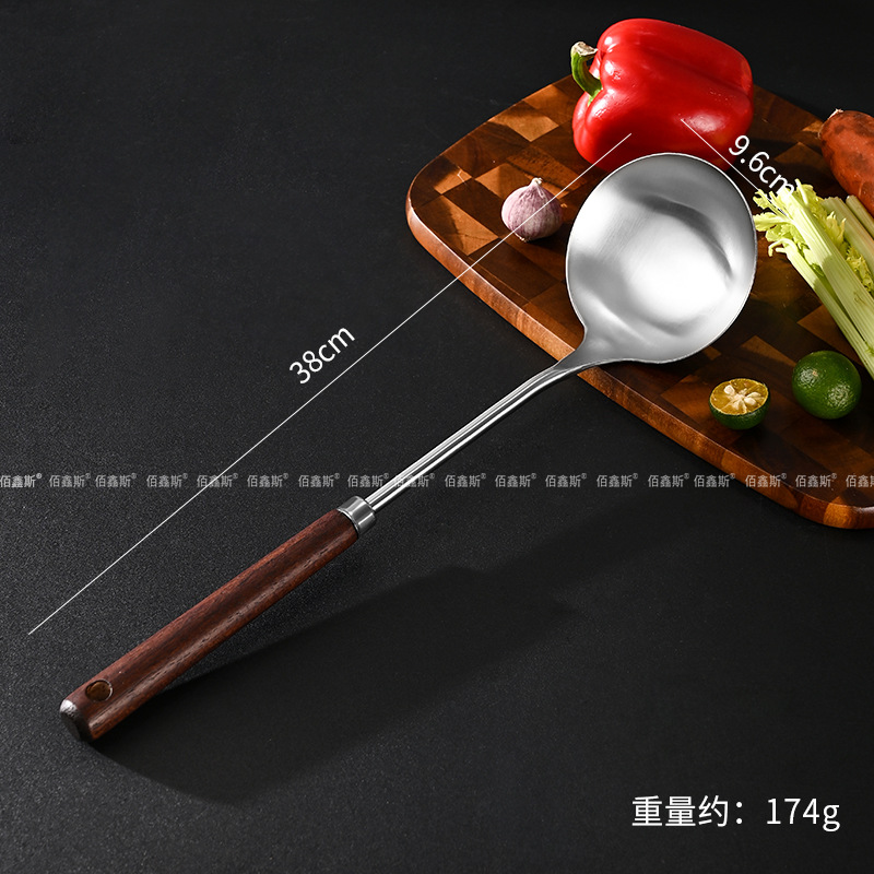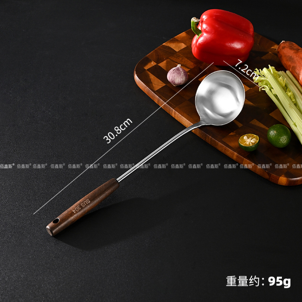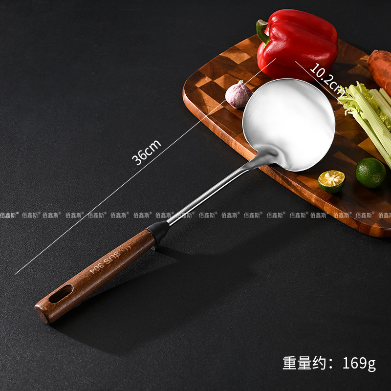 304 스테인레스 스틸 주걱, 가정용 나무 손잡이 주방기구, 고온 방지 소쿠리, 주걱, 주방기구 세트, 수프 스푼, 주방기구스토어 가기