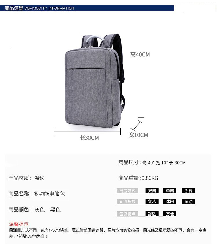 국경 간 배낭 남성용 고급 비즈니스 컴퓨터 가방 대용량 경량 배낭 맞춤형 로고 여행 배낭