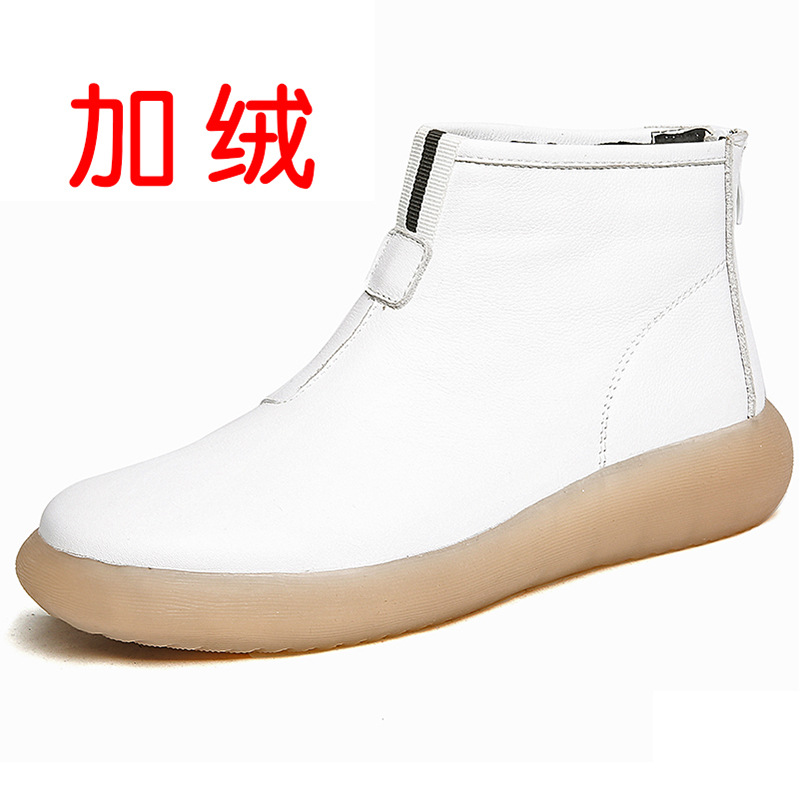 가을과 겨울 새로운 여성 신발 정품 가죽 부드러운 밑창 여성용 부츠 쇠고기 미끄럼 방지 내마모성 짧은 부츠 여성용 플랫 솔 마틴 부츠 캐주얼 여성