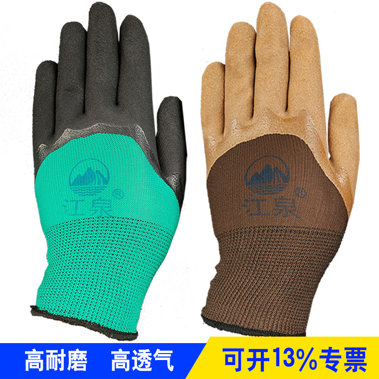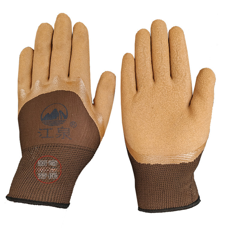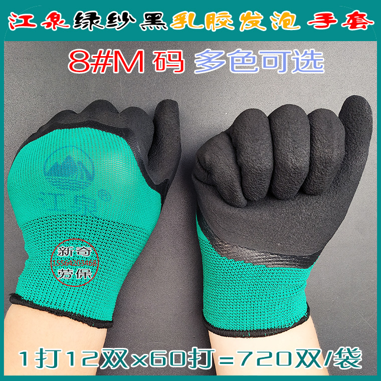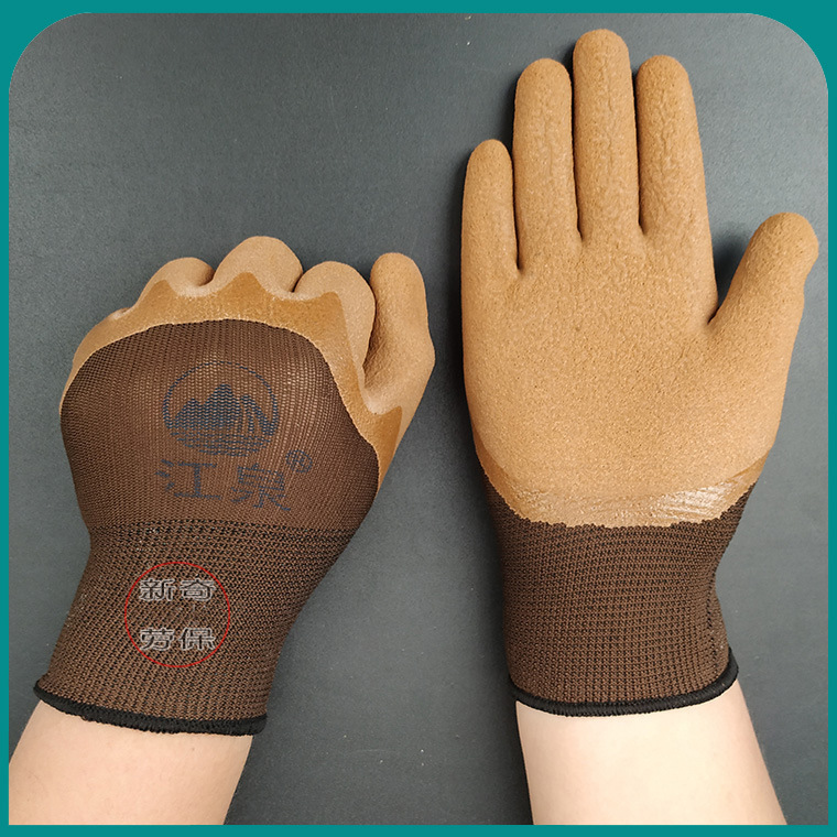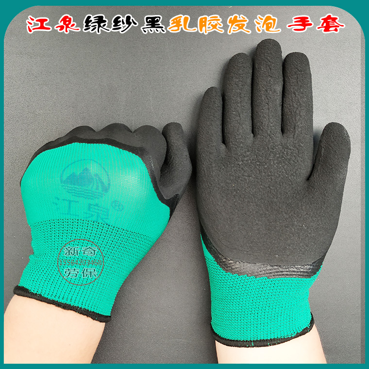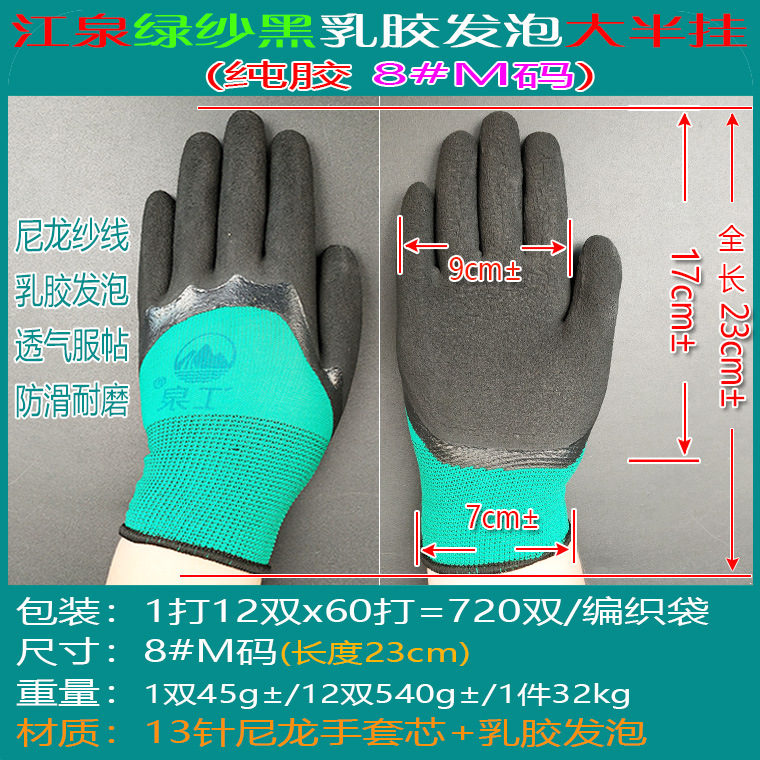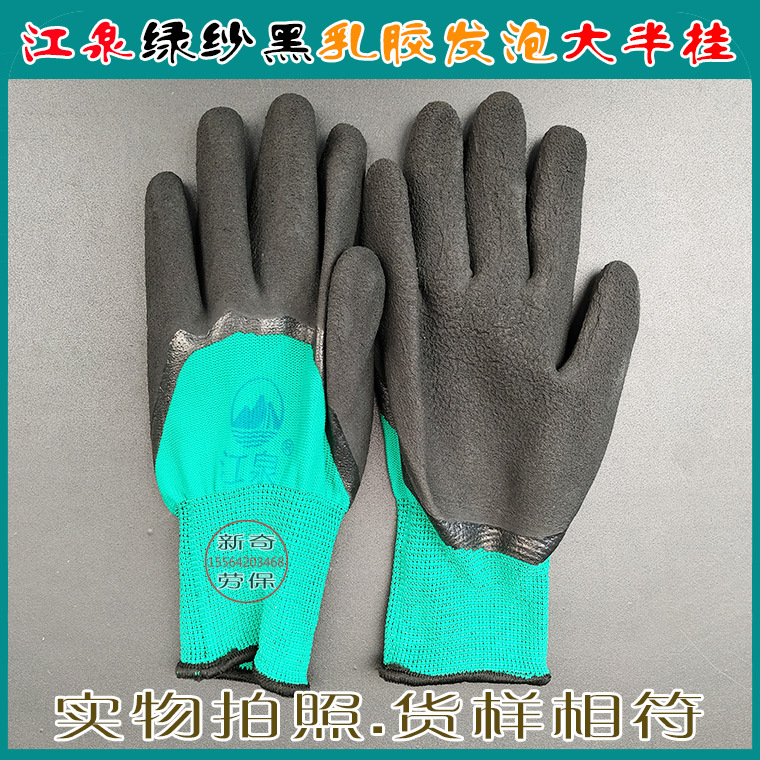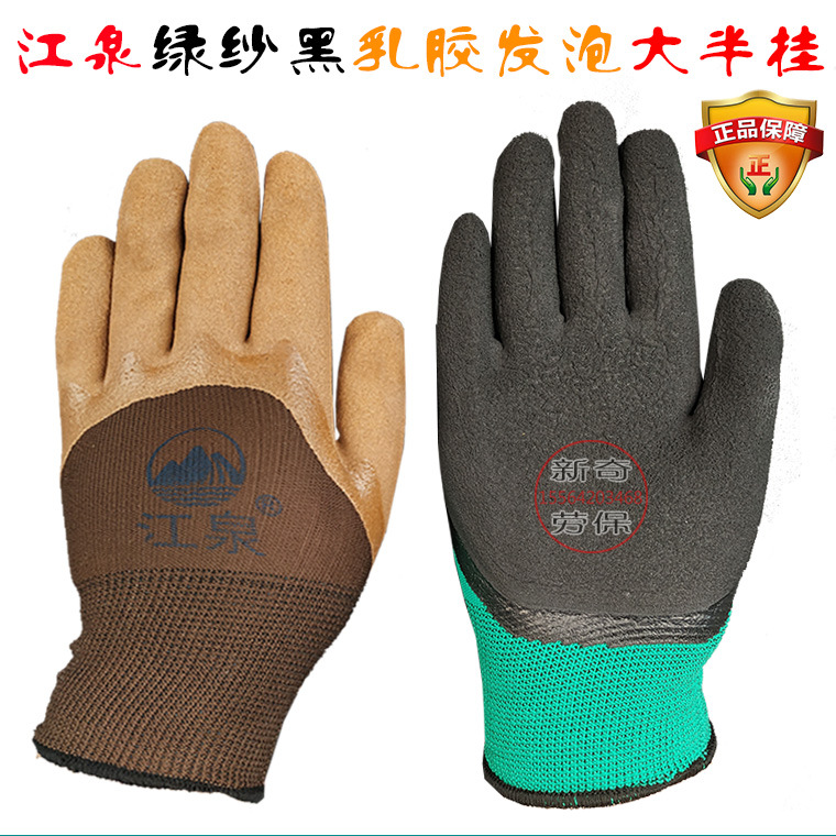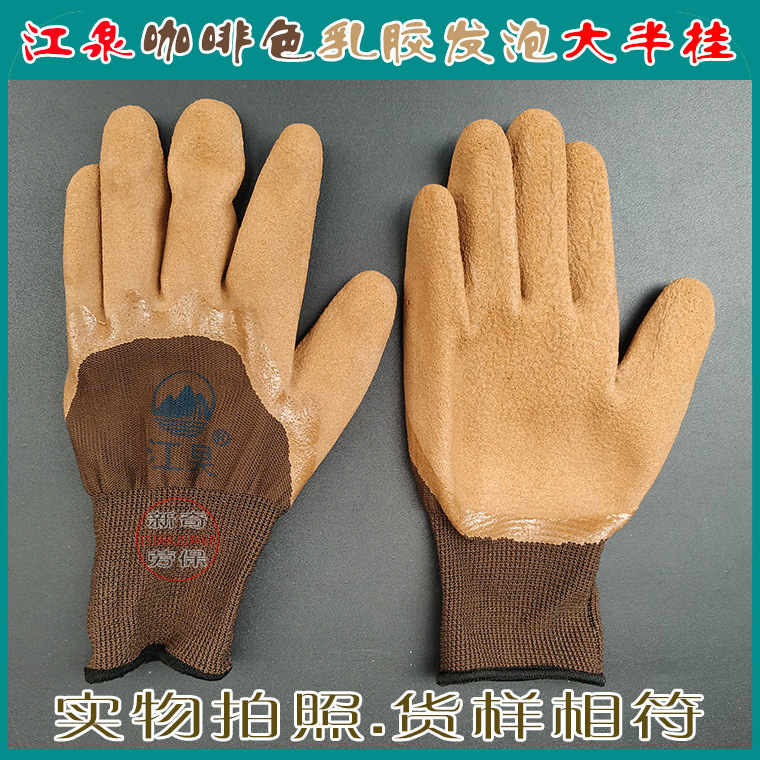 【商品名称】:江泉咖啡色绿纱黑乳胶发泡大半挂劳保手套