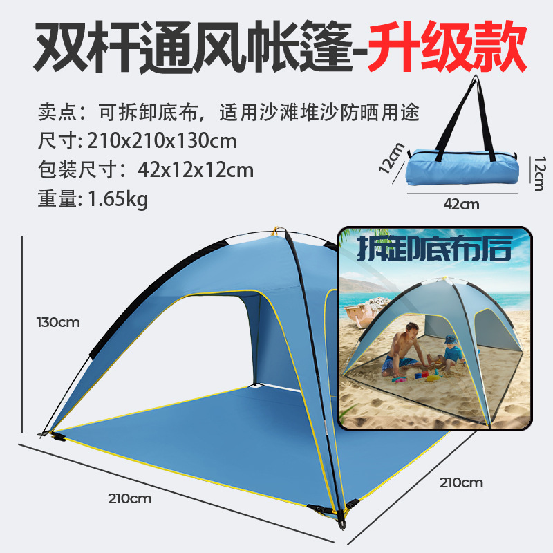 비치 텐트 크로스 보더 폴리에스터 실버 코팅 자외선 차단제 및 비 방지 퀵 오프닝 3 면 통풍 넓은 야외 텐트 구축스토어 가기