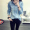 데님 셔츠 여자 긴 소매 2018 가을 새로운 느슨한 중간 길이 학생 한국 스타일 셔츠 세련된 초가을 탑