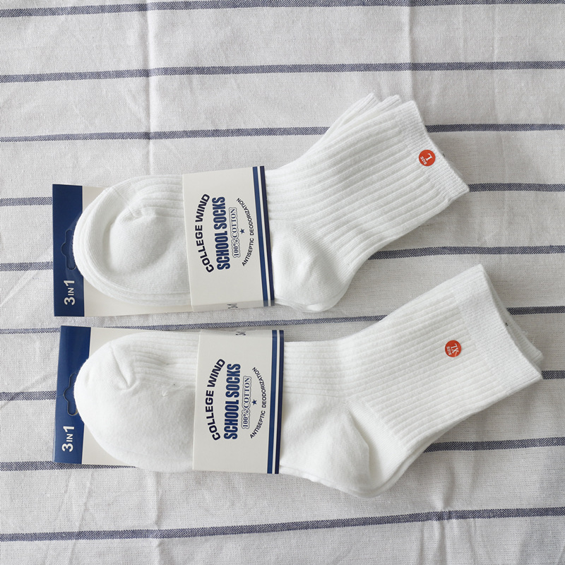 도매 봄과 가을 어린이 양말 흰색 학생 양말 소년과 소녀 미드 튜브 양말 더블 바늘 스포츠 양말 면 양말 짧은 양말스토어 가기