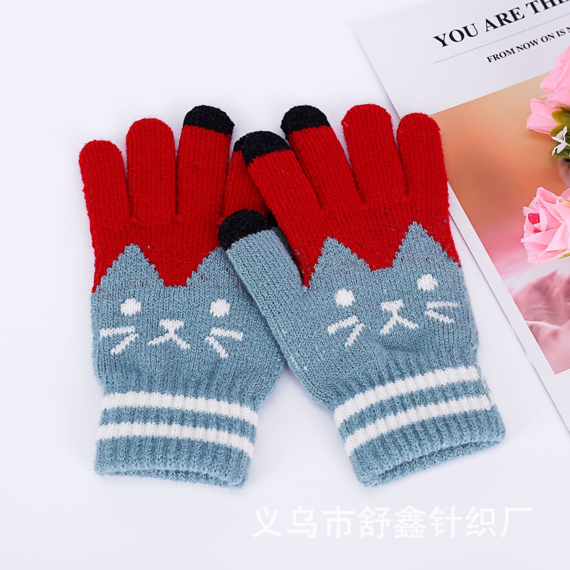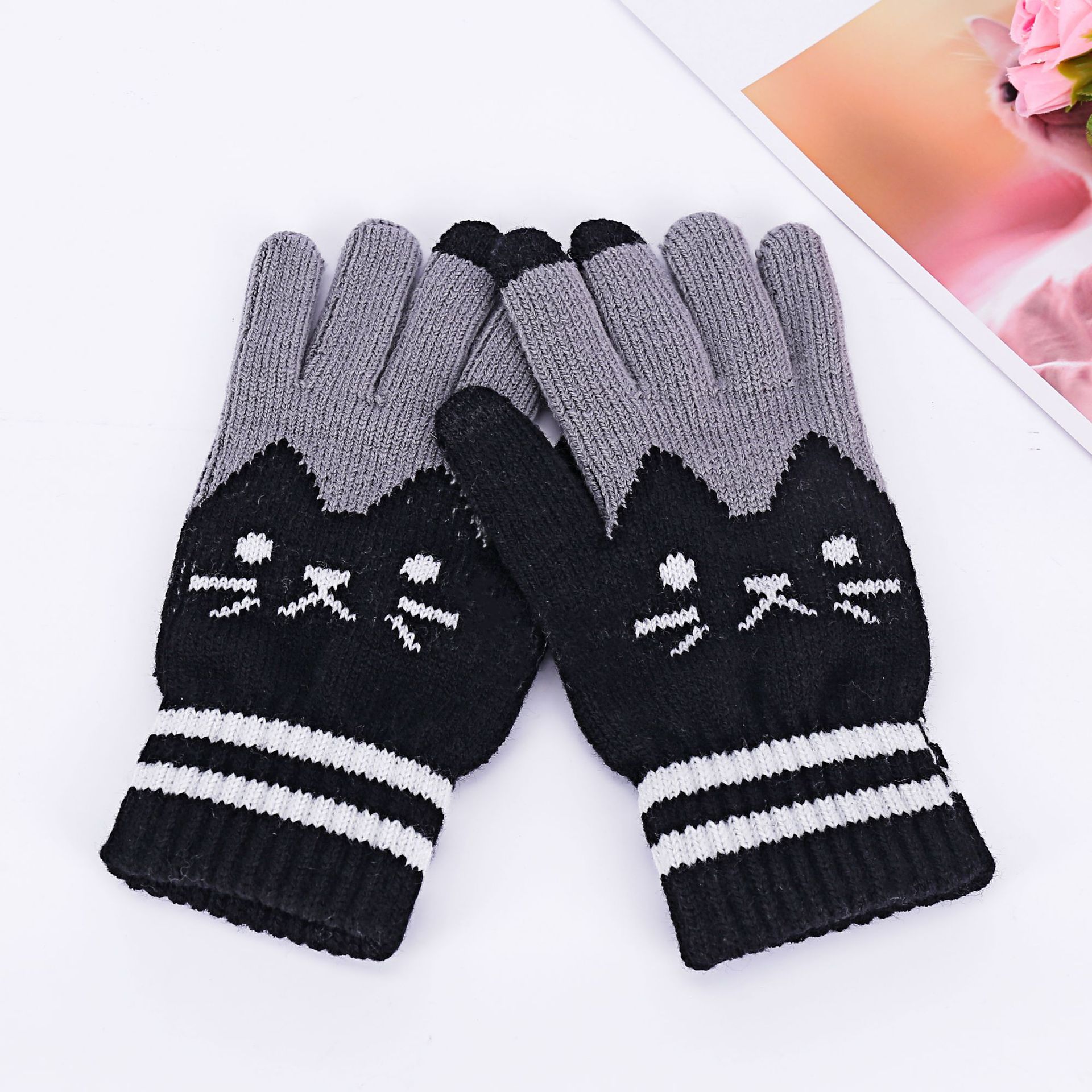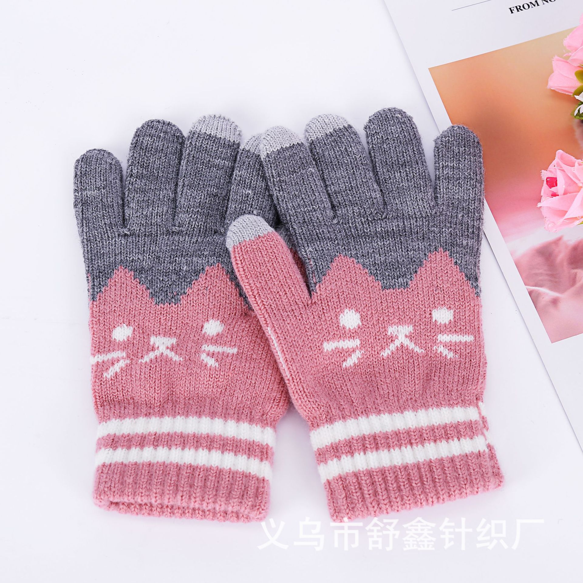 고양이 터치 스크린 장갑 니트 기모 두꺼운 새끼 고양이 얼굴 휴대 전화 장갑 제조 업체 만화 장갑의 모든 종류의 도매