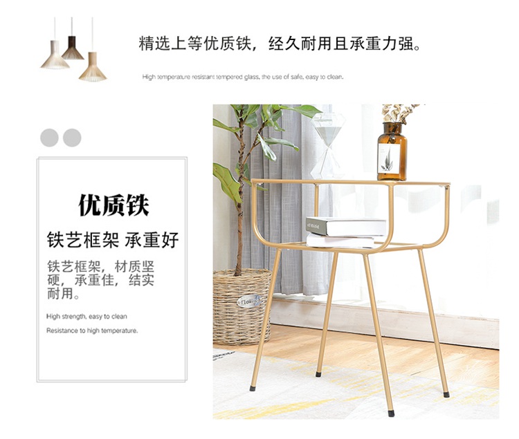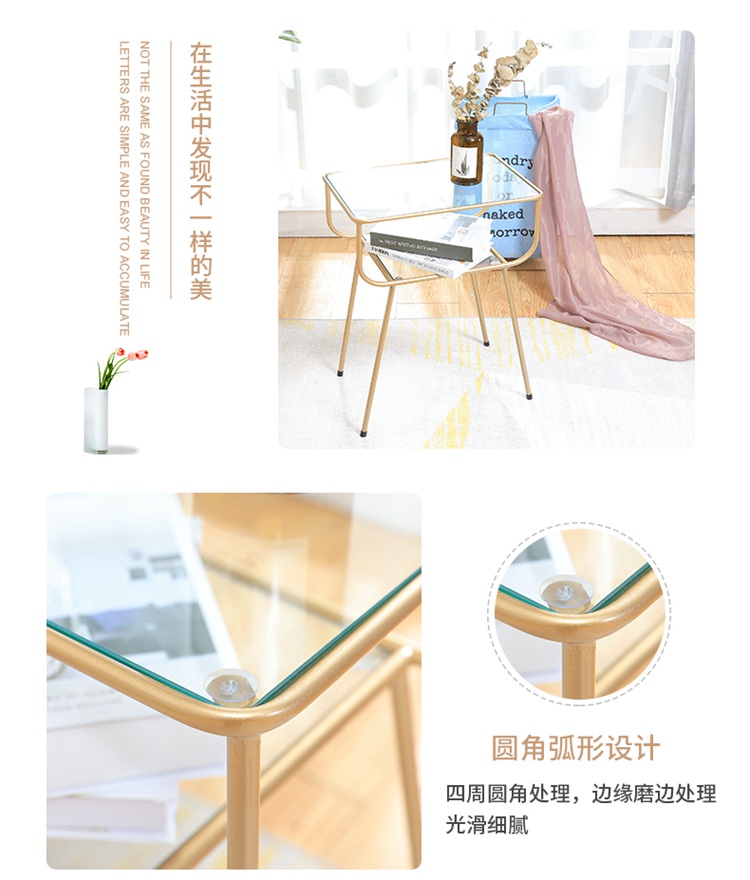 북유럽 심플 모던 크리에이티브 유리 철 커피 테이블 거실 소파 사이드 테이블 코너 테이블 골드 침대 옆 탁자 작은 사이드 테이블스토어 가기
