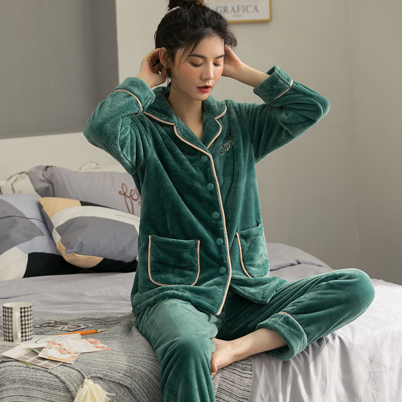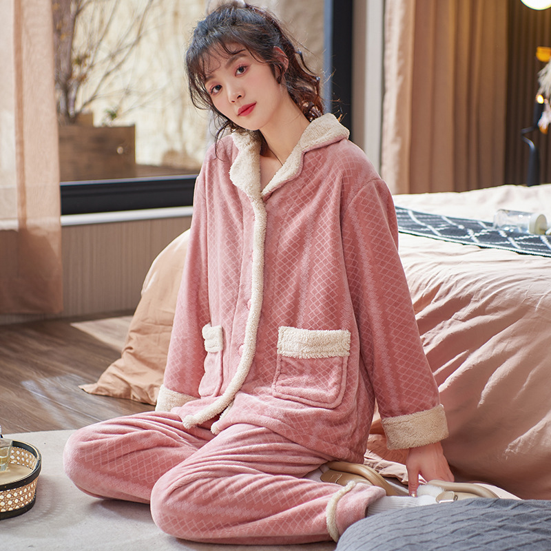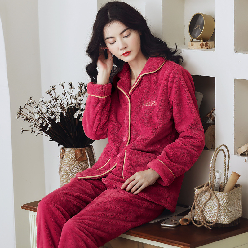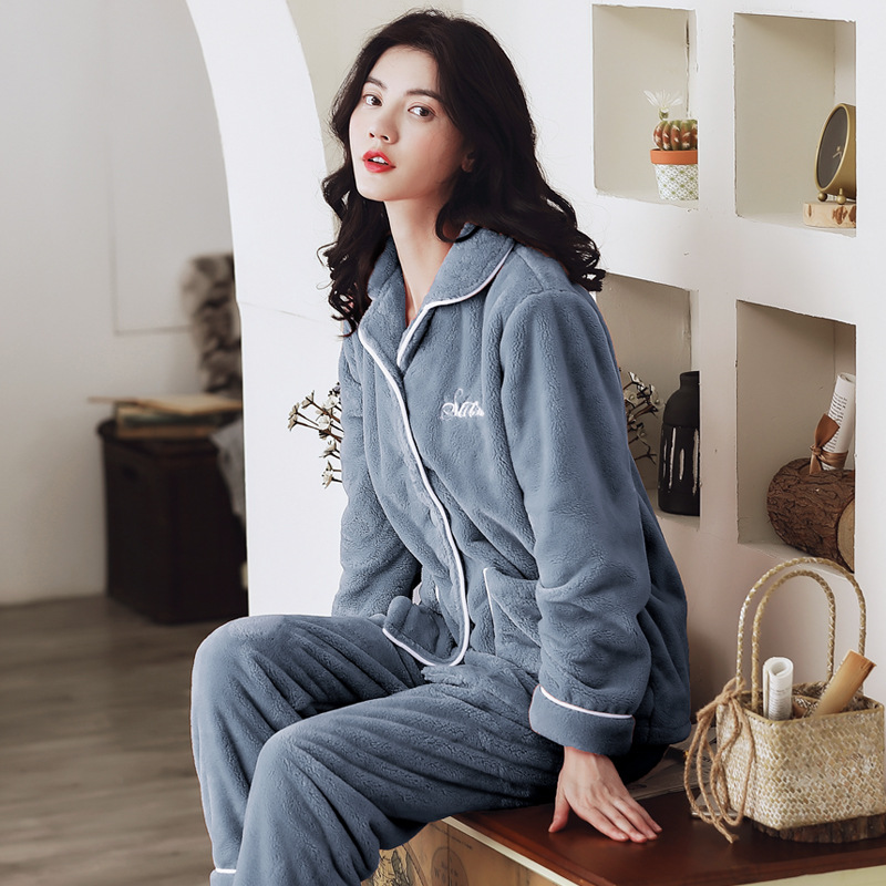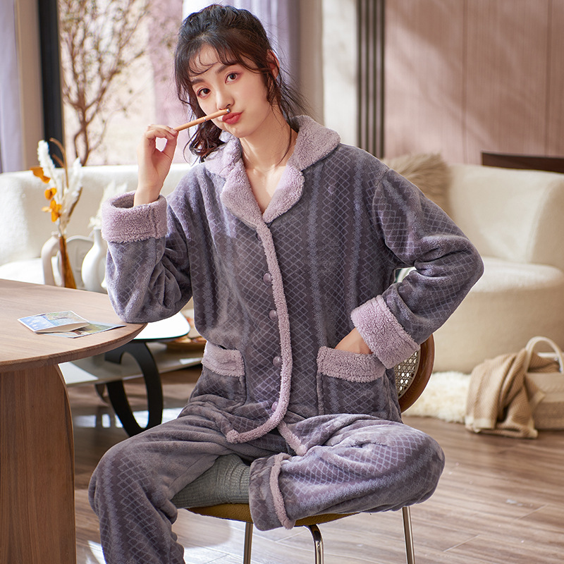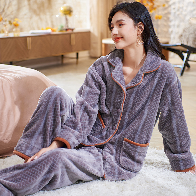 잠옷 여자의 겨울 플란넬 두꺼운 기모 산호 양털 따뜻한 가을과 겨울 긴 소매 중년 어머니 세트