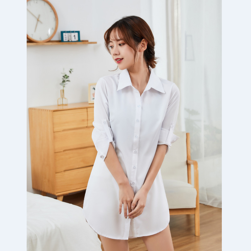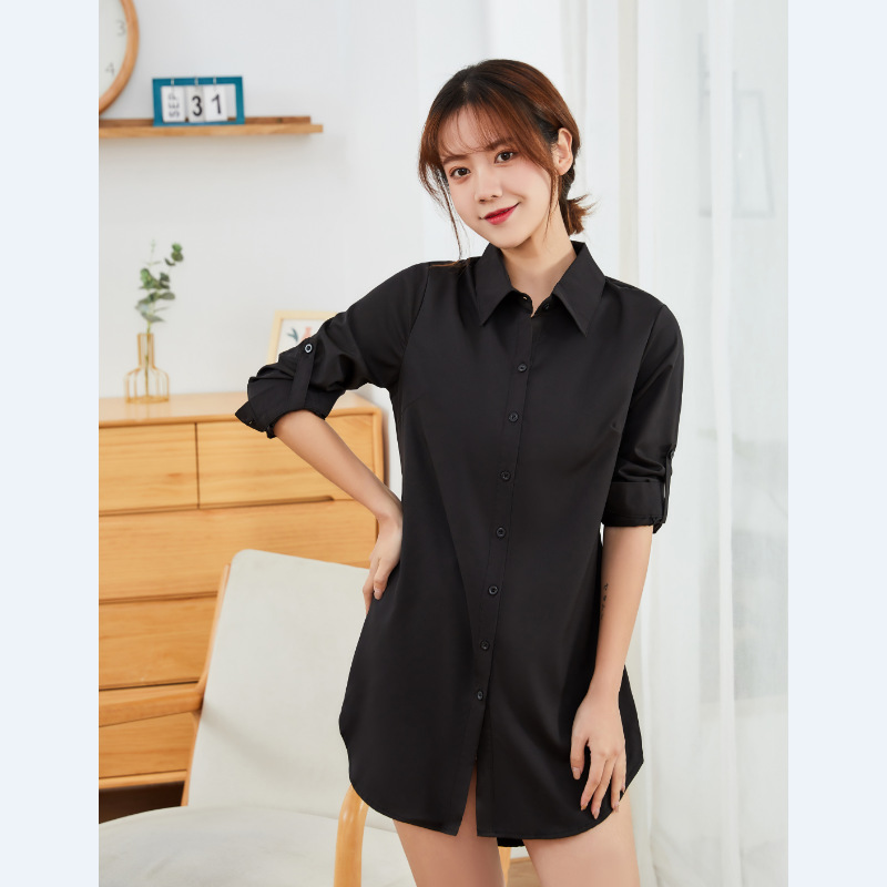 흰색 셔츠 여성 중간 길이 긴팔 한국식 루즈하고 다재다능한 학생 봄 바닥 bf 셔츠 대형 블루 핑크스토어 가기
