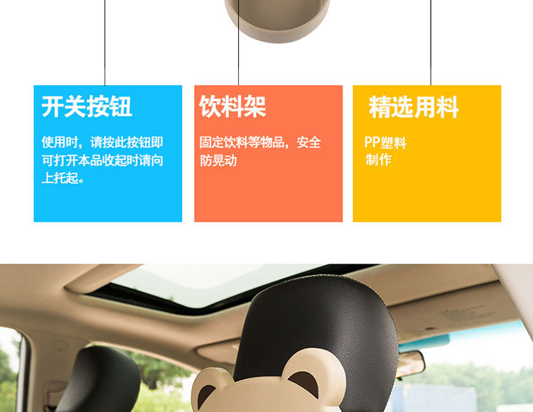 1、通常固定在椅背上。可以放置饮料、点心等物品。