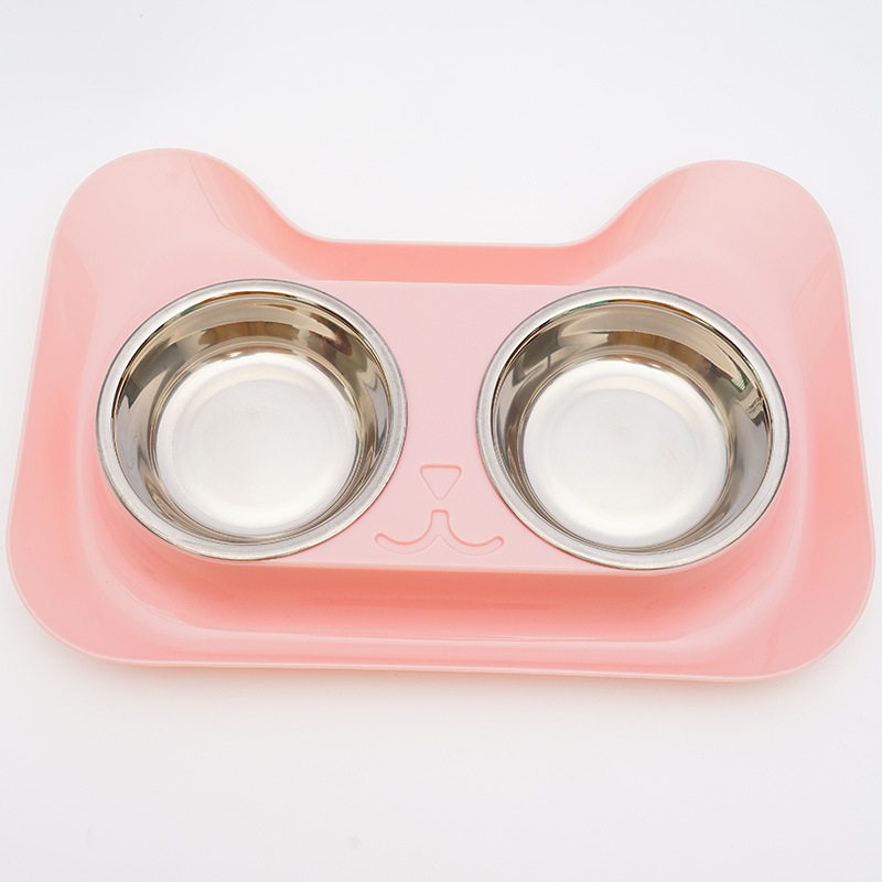 고양이 그릇 이중 그릇 통합 애완 동물 식품 세트 고양이 밥 그릇 고양이 먹이 그릇 고양이 물 그릇 스테인레스 스틸 고양이 그릇 개 그릇 도매스토어 가기