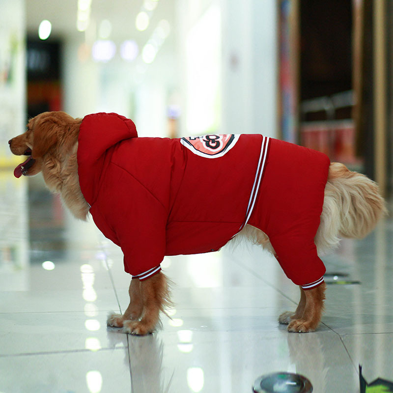 강아지 옷 가을과 겨울 골든 리트리버 래브라도 사모 중대형 개 두꺼운 기모 네 다리 면 옷 새로운스토어 가기