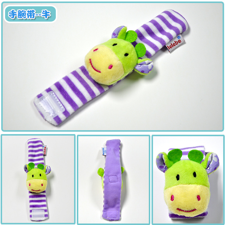 婴儿动物手腕带摇铃益智玩具卡通牛