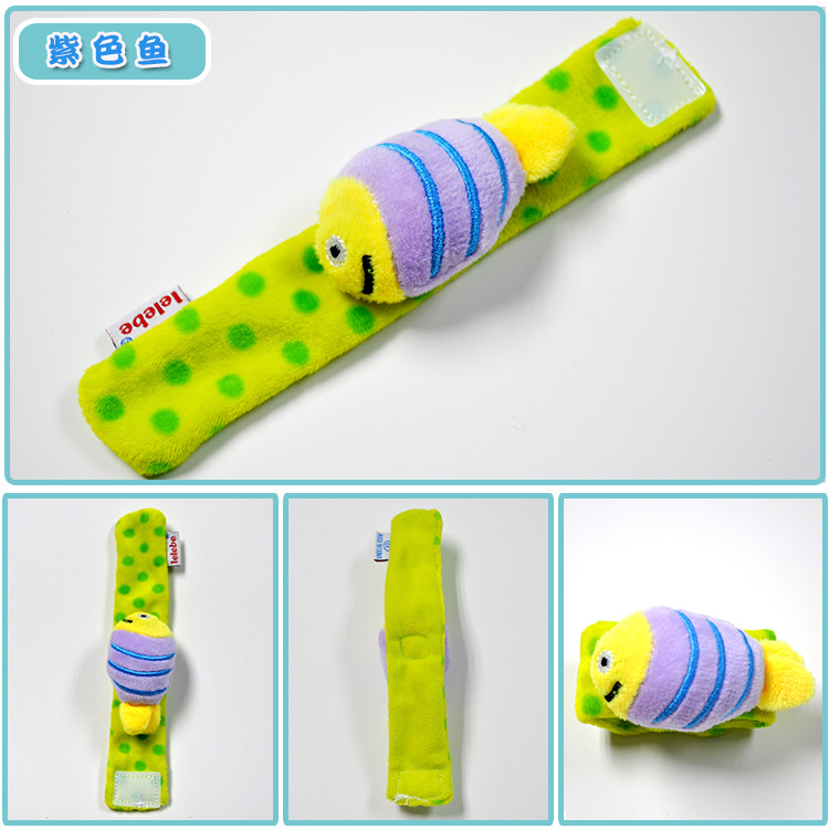 婴儿动物手腕带摇铃益智玩具紫色鱼