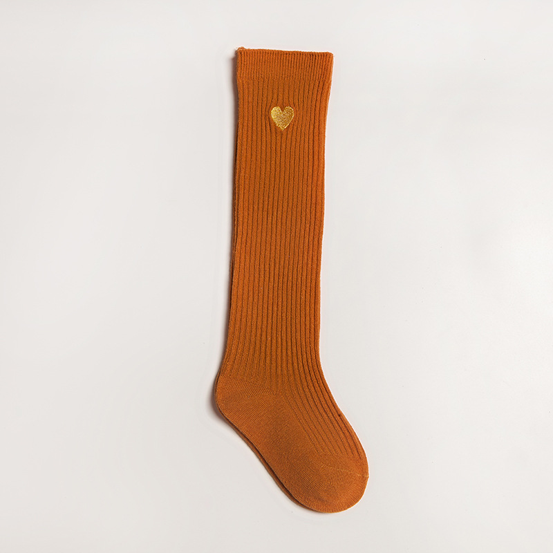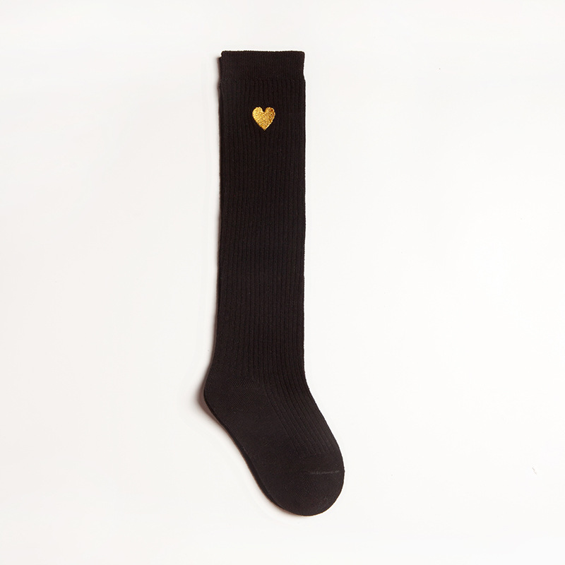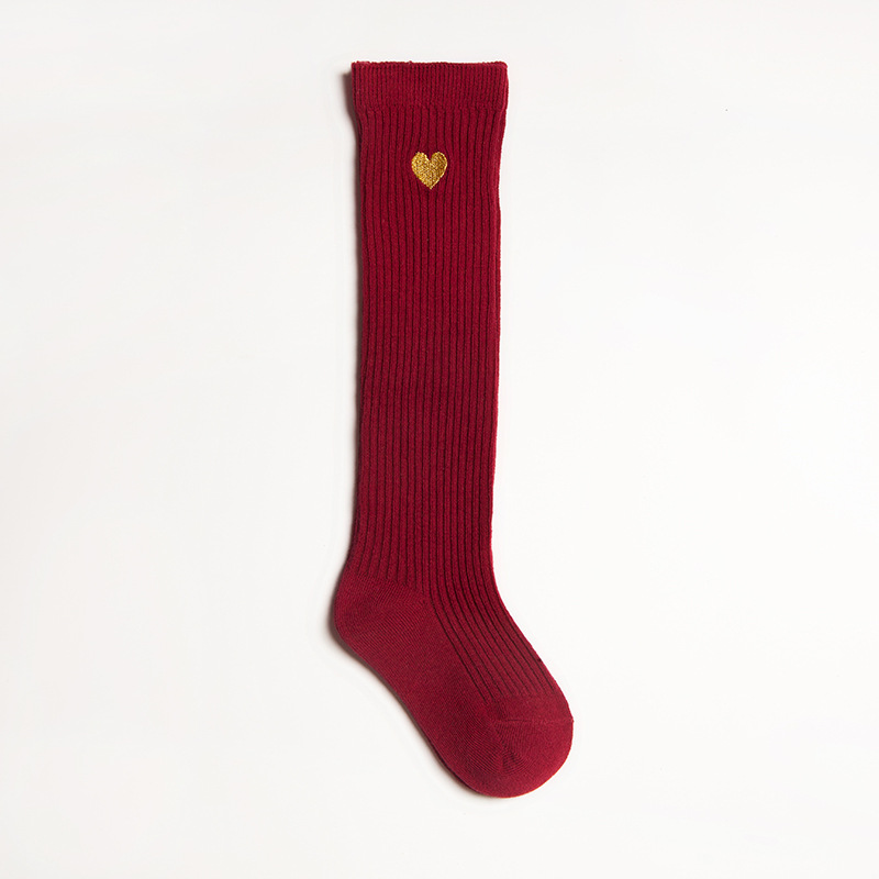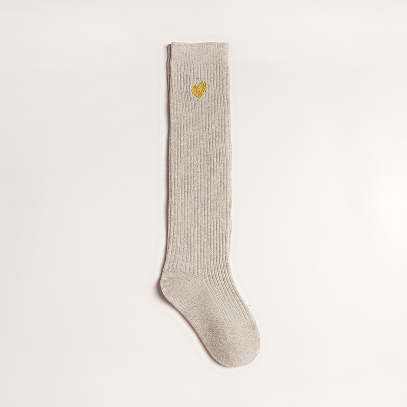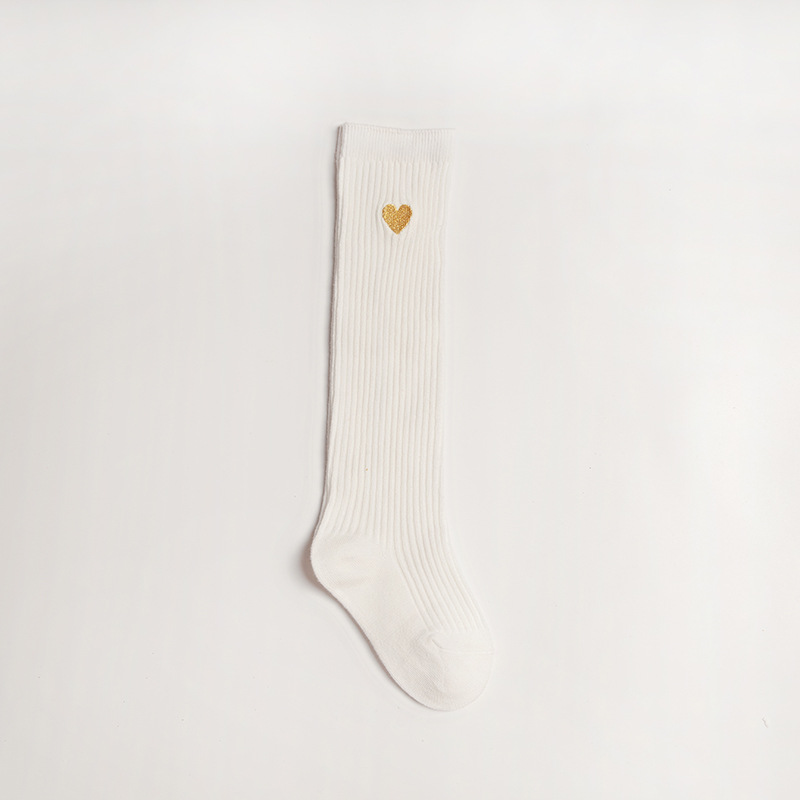 봄과 가을 어린이 무릎 위 학생 양말 귀여운 통기성 땀 흡수 단색 사랑 자수 소녀 긴 배럴 아기 양말