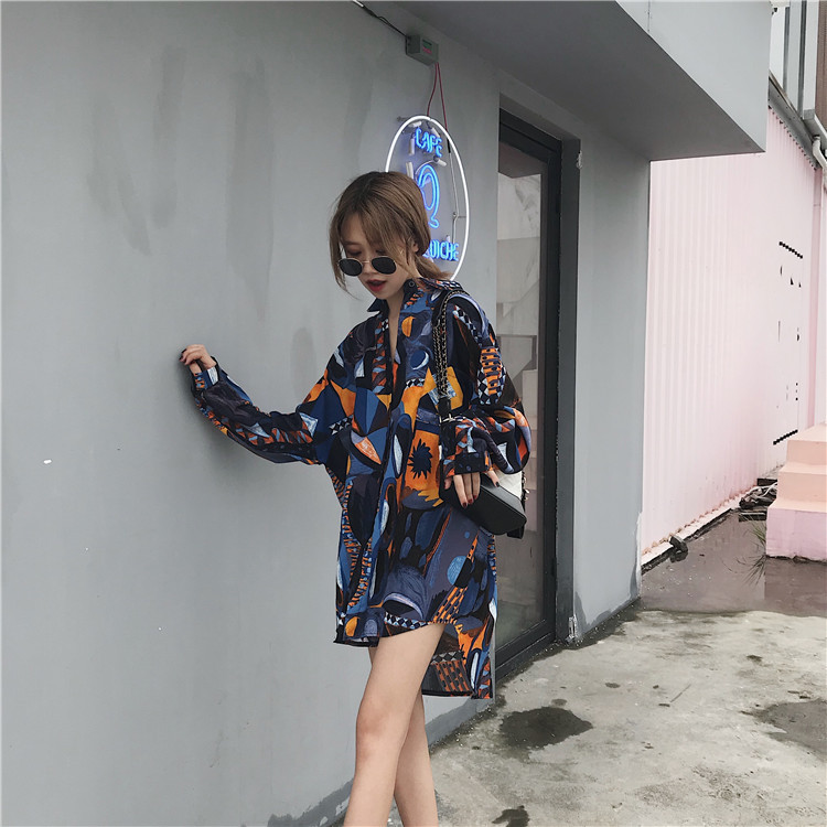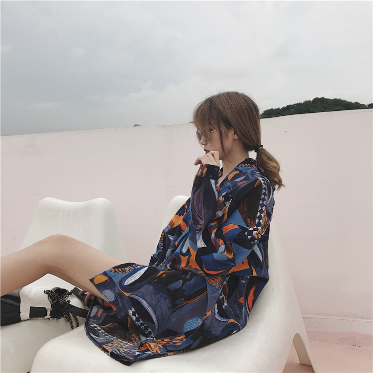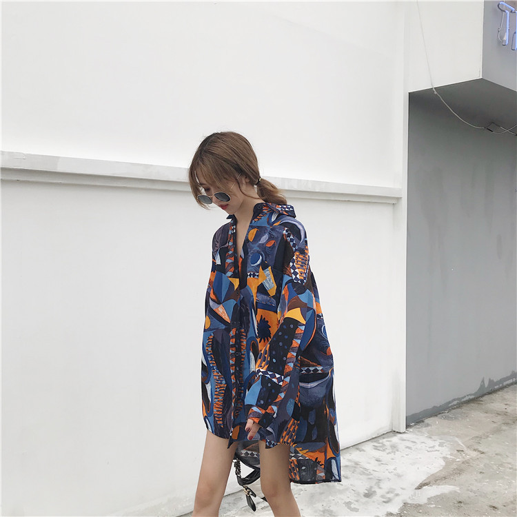 等了这么久这件欧版的撞色色块长款衬衣终于“水墨”登场