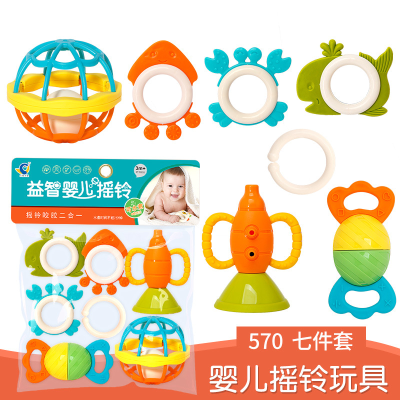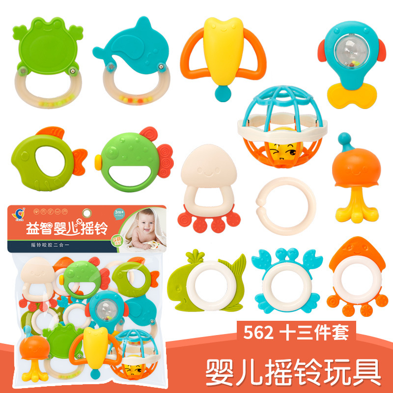 注:摇铃颜色,部分款式随机,牙胶片(水果款/钥匙款/海洋款)随机。套装数量不变。