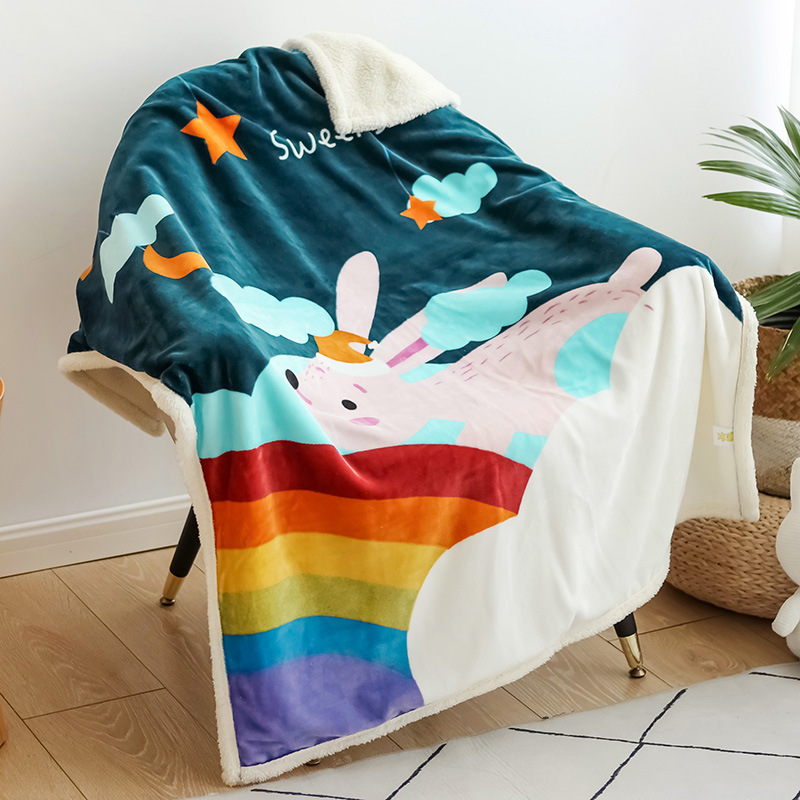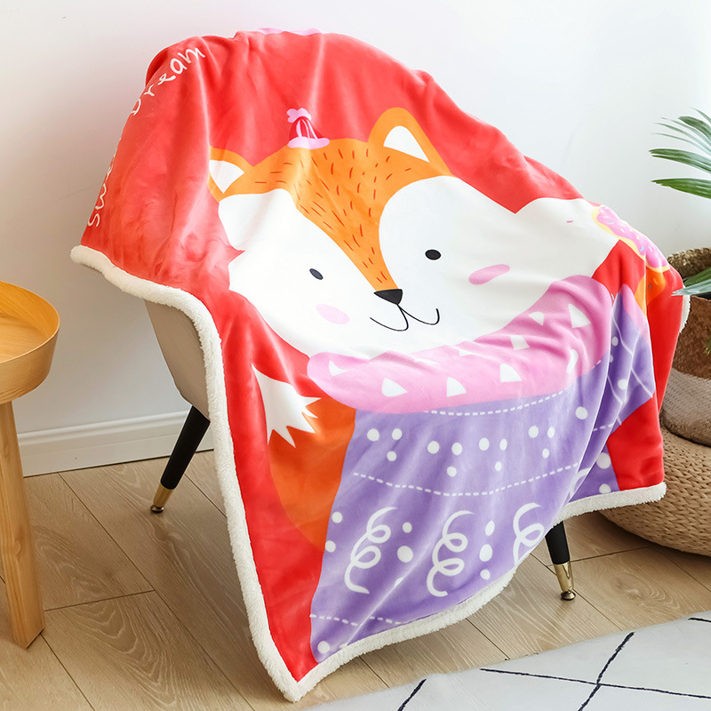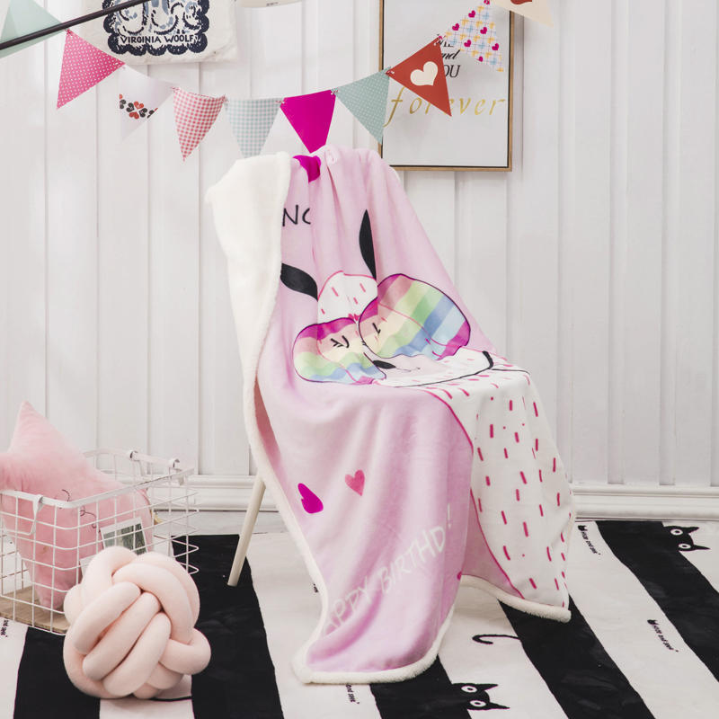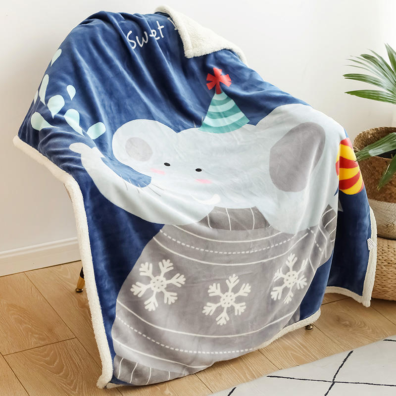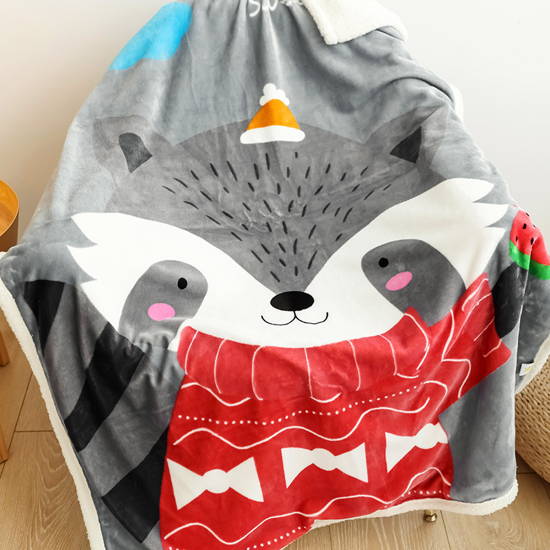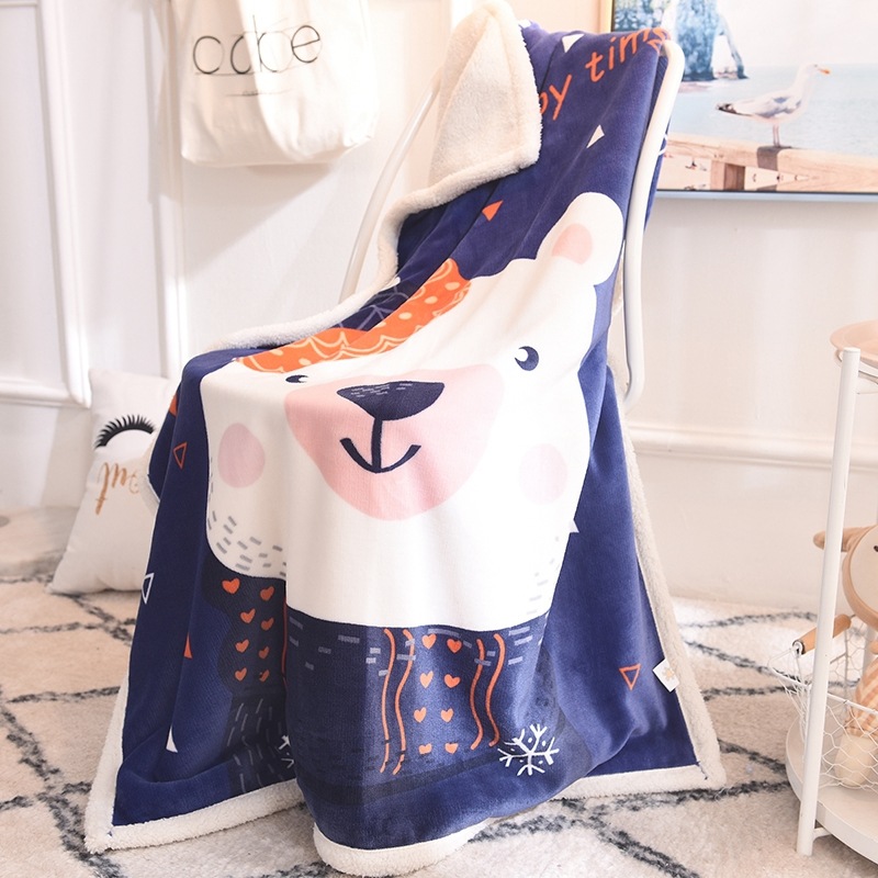 만화 더블 레이어 브러시 캐시미어 양가죽 담요 어린이 담요 두꺼운 에어컨 커버 담요 소파 담요 아기 동물 담요