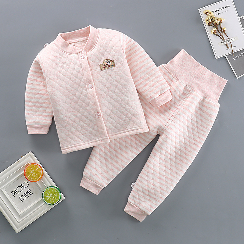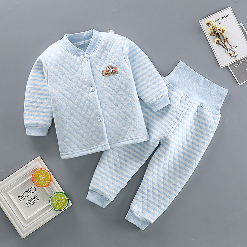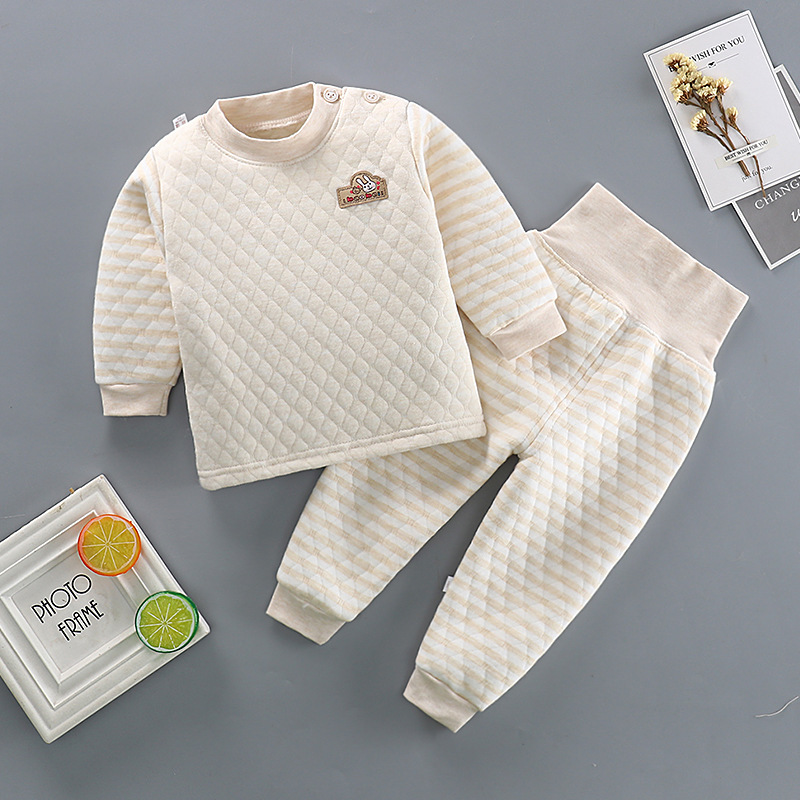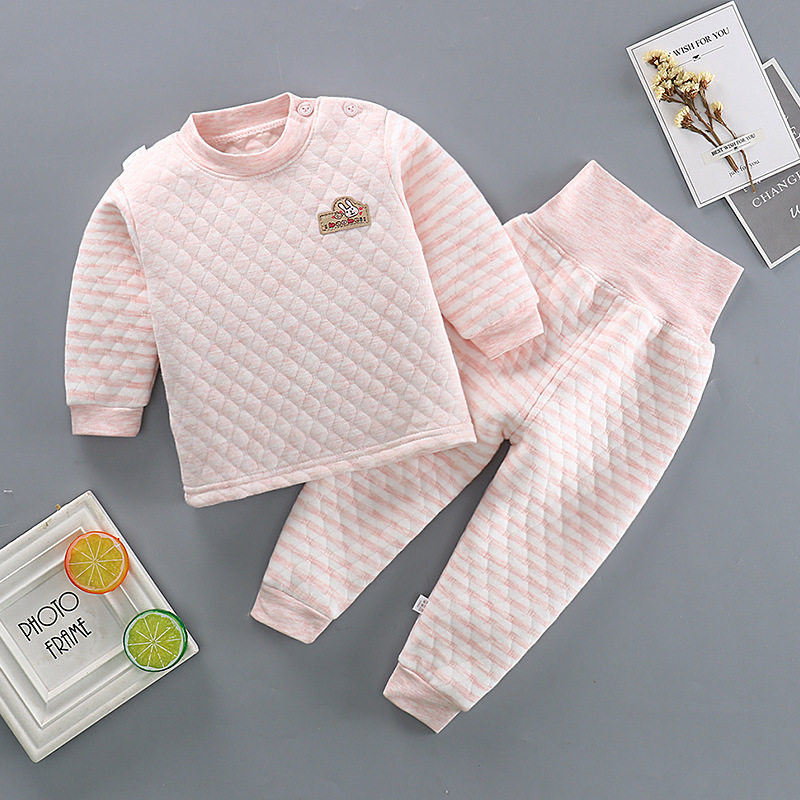 어린이 3 층 퀼트 하이 웨이스트 배꼽 바지 아기 열 속옷 세트 아기 두꺼운 옷