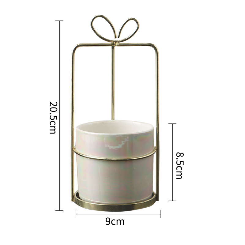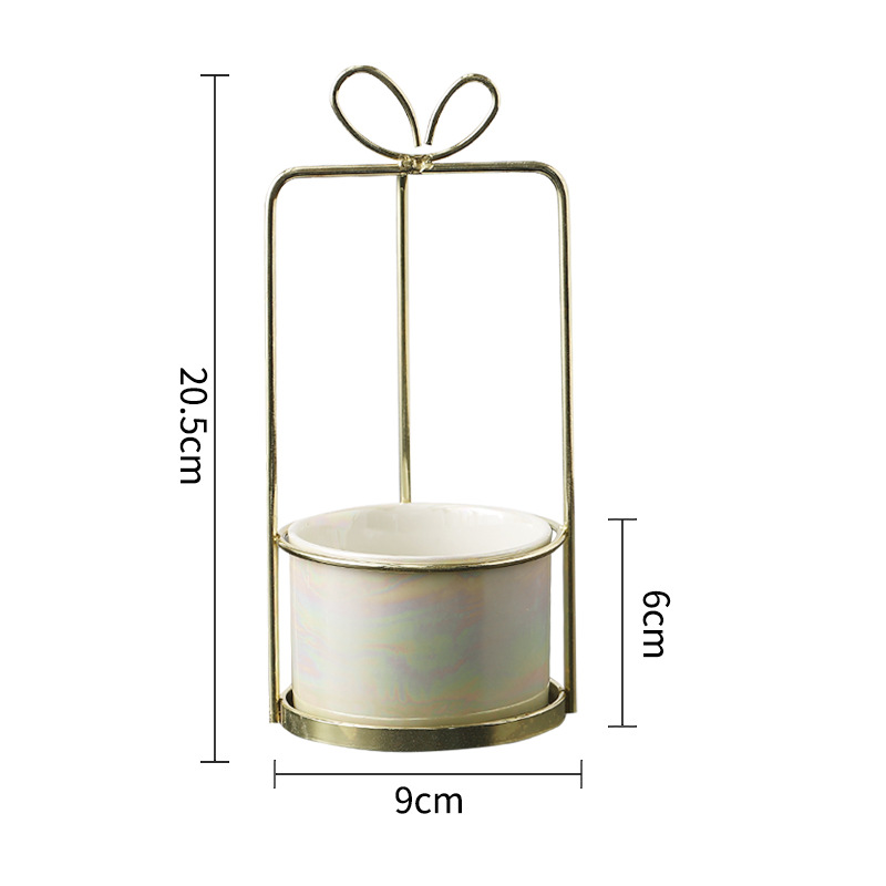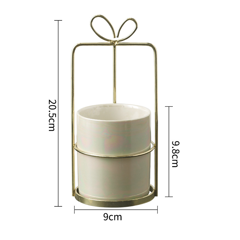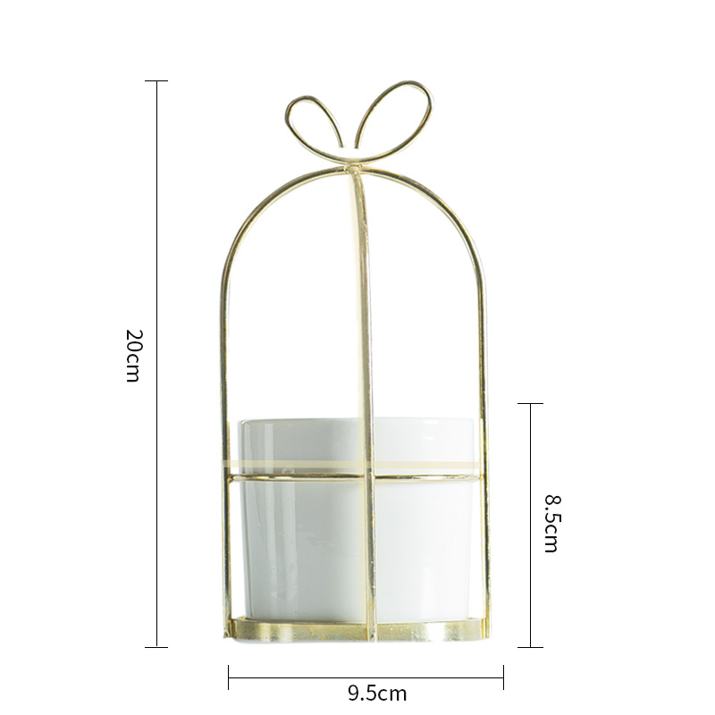 Ins 단철 다육 꽃 냄비 간단한 북유럽 꽃병 철 프레임 꽃 프레임 세라믹 수경 꽃 냄비 녹색 심기 골드 도금 꽃 냄비