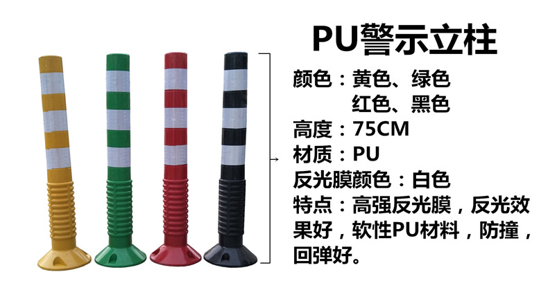 柱70cm反光立柱弹力柱防撞柱隔离柱钢管橡胶pu75cm柱交通塑料警示