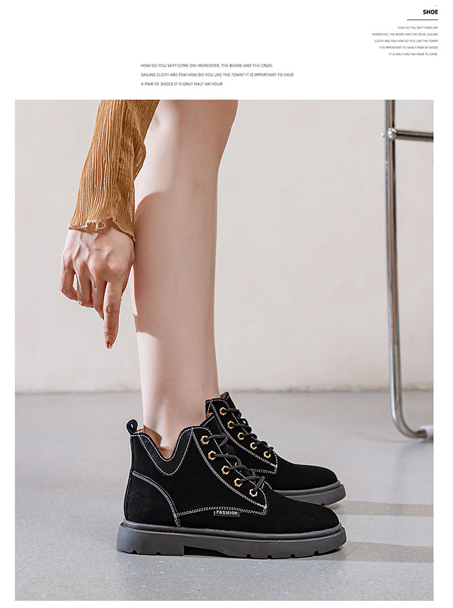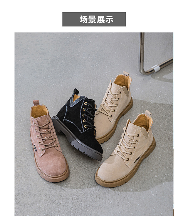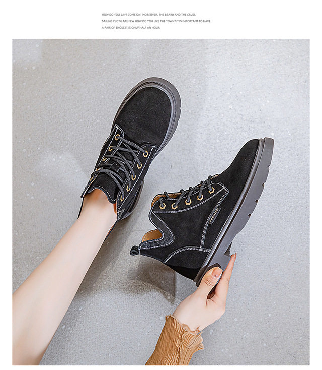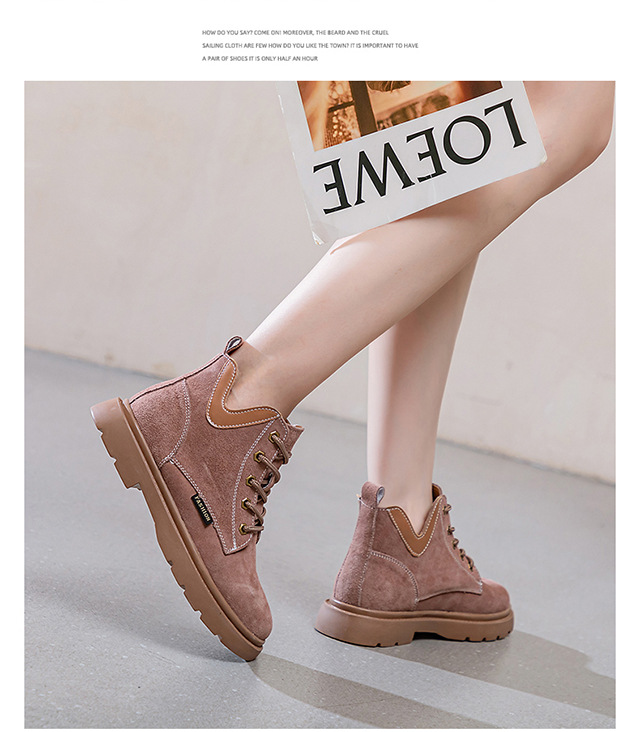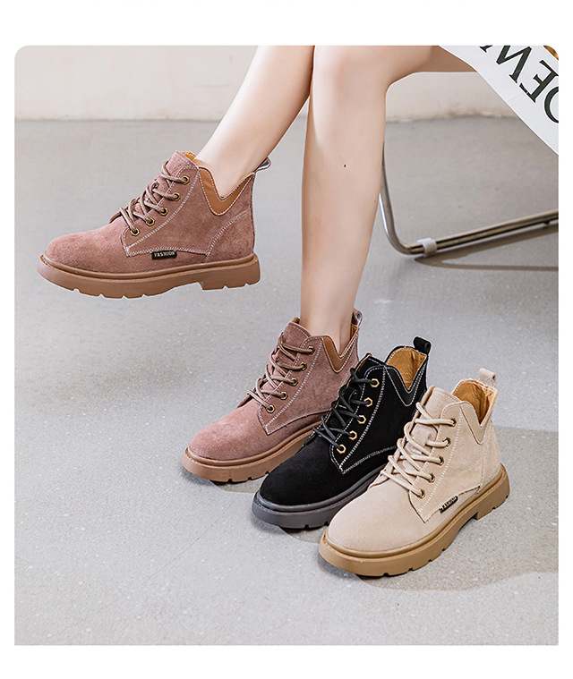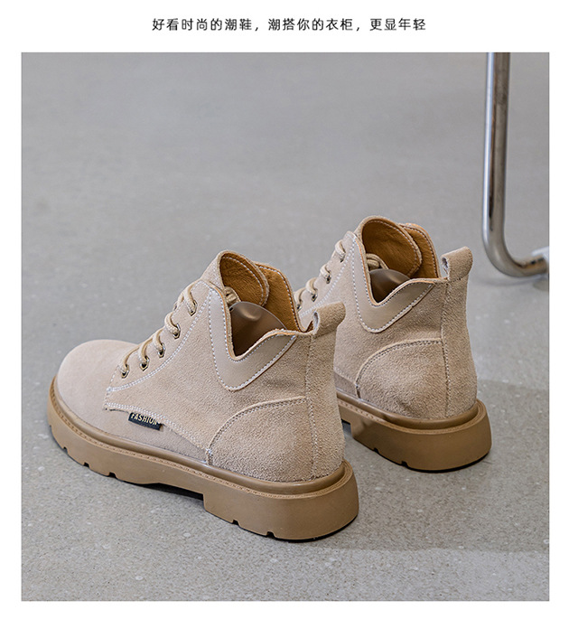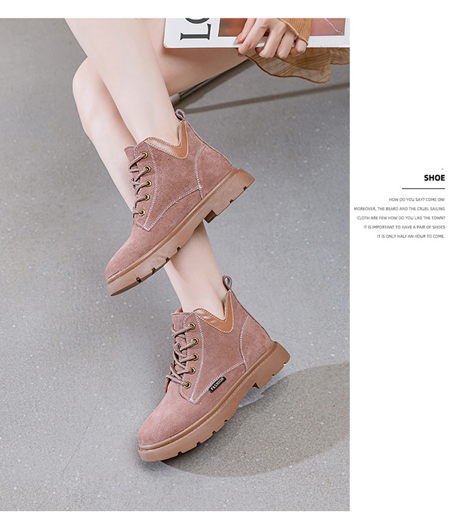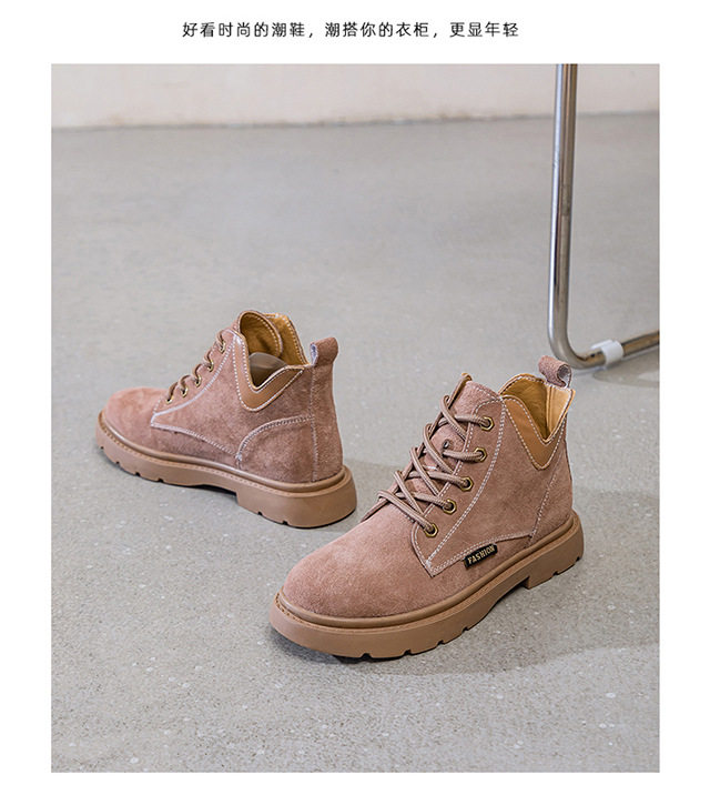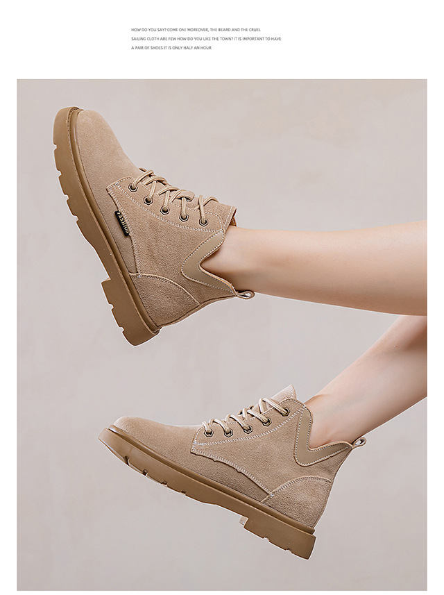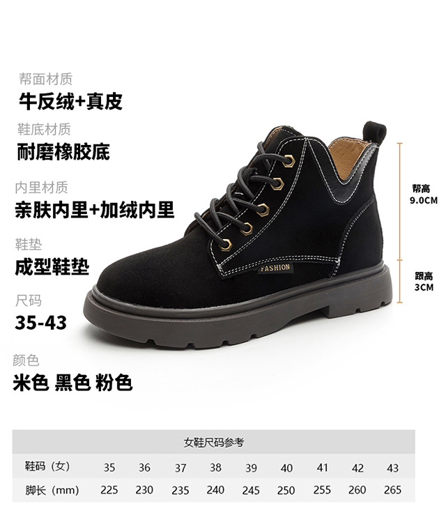 2025 가을 겨울 신상품 플러스 벨벳 가죽 마틴 부츠 여성용 소가죽 플랫솔 레이스업 숏부츠 대형 여성 신발 41-43스토어 가기