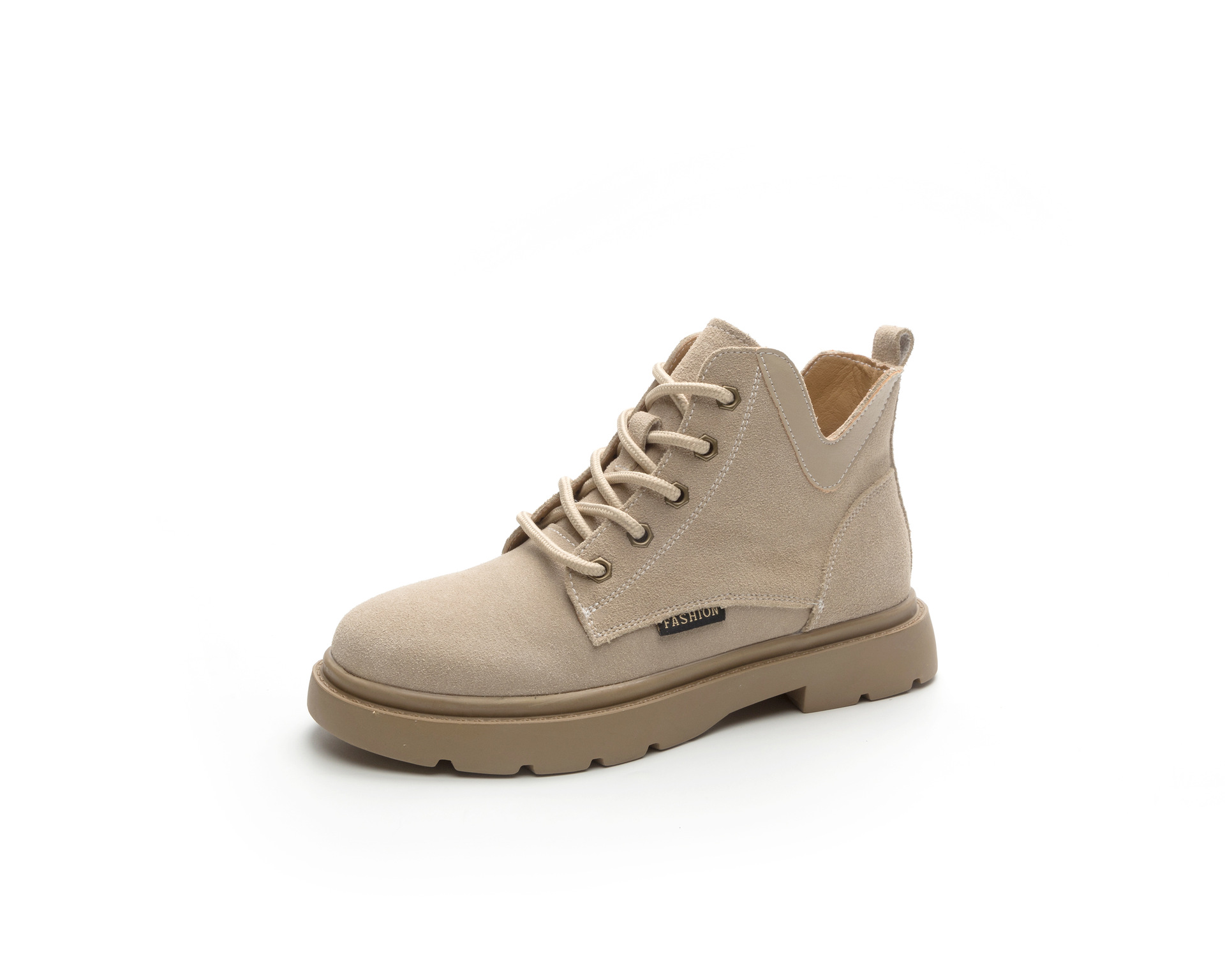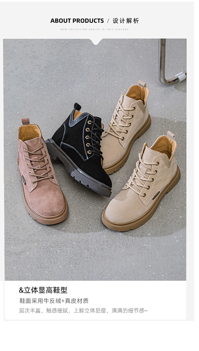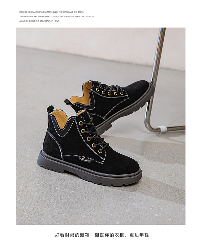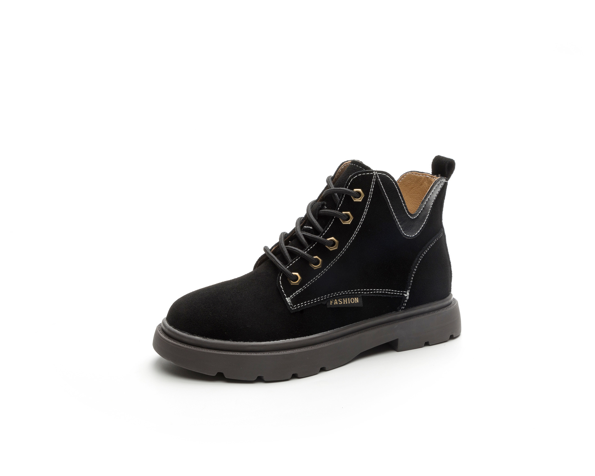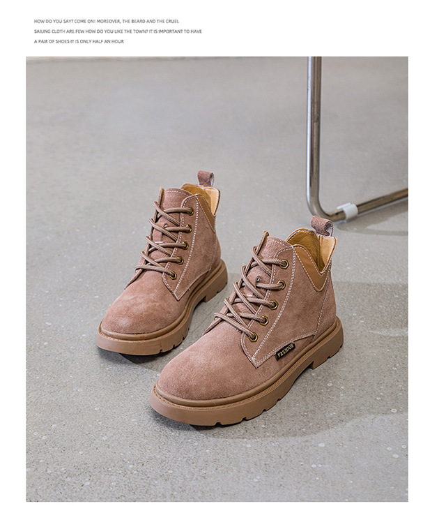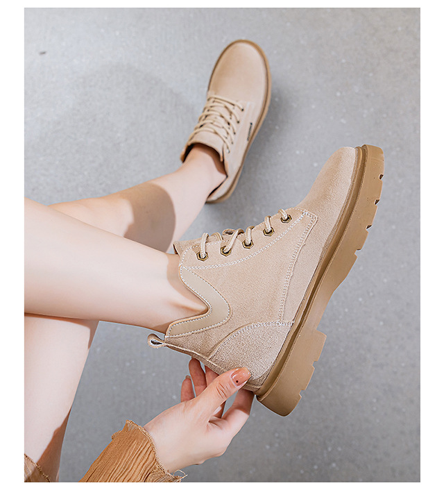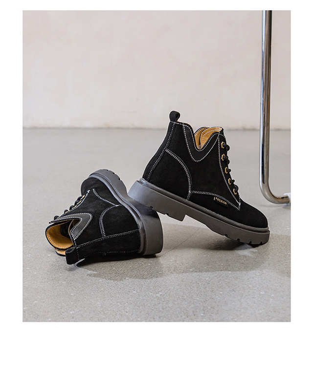 2025 가을 겨울 신상품 플러스 벨벳 가죽 마틴 부츠 여성용 소가죽 플랫솔 레이스업 숏부츠 대형 여성 신발 41-43스토어 가기