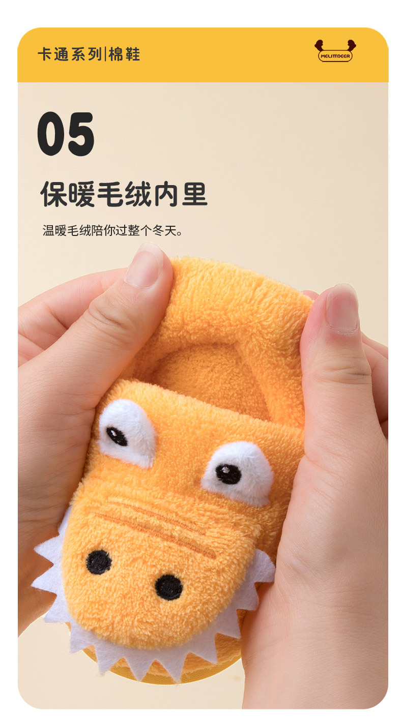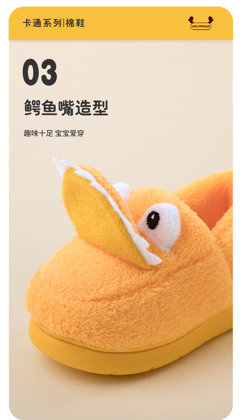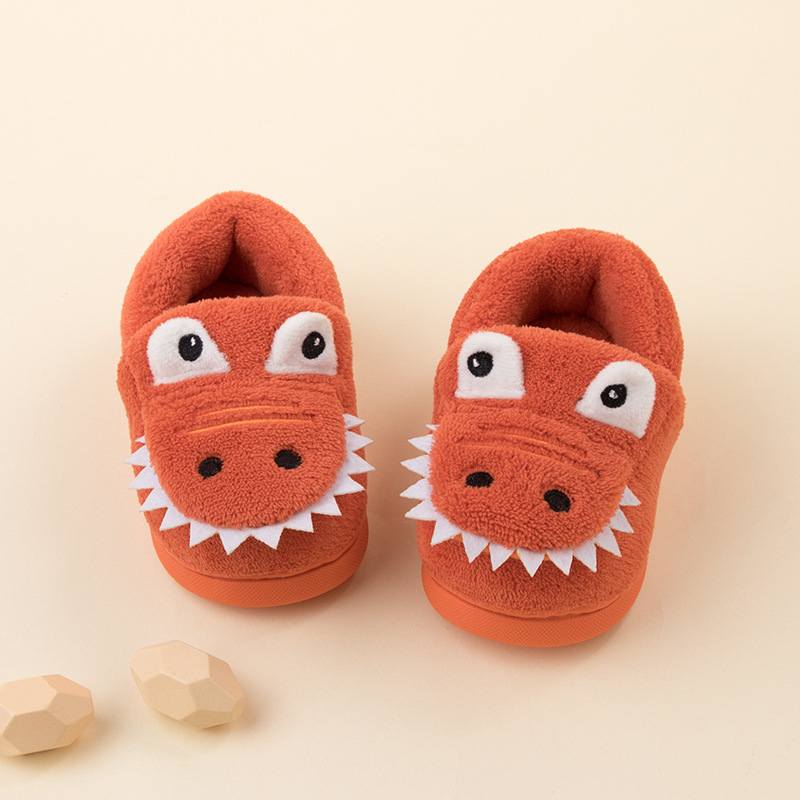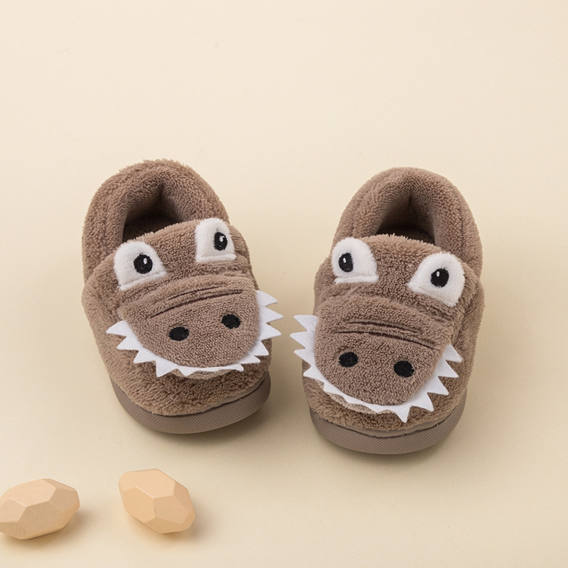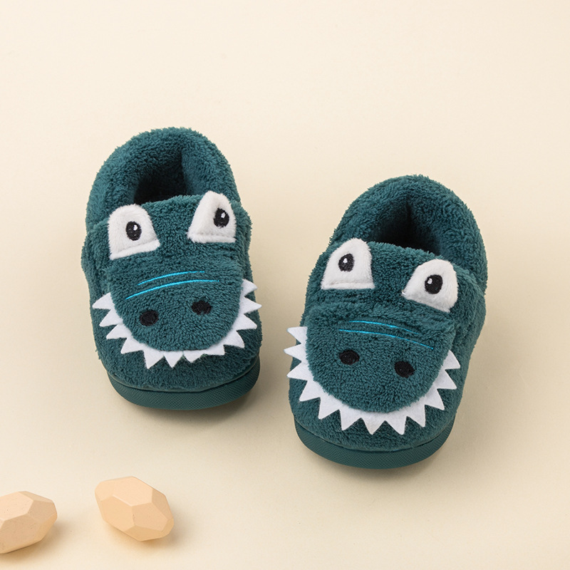 어린이용 겨울용 면 슬리퍼, 남아용 만화 캐릭터 귀여운 디자인, 따뜻하고 미끄럼 방지, 두꺼운 부드러운 밑창 어린이 슬리퍼