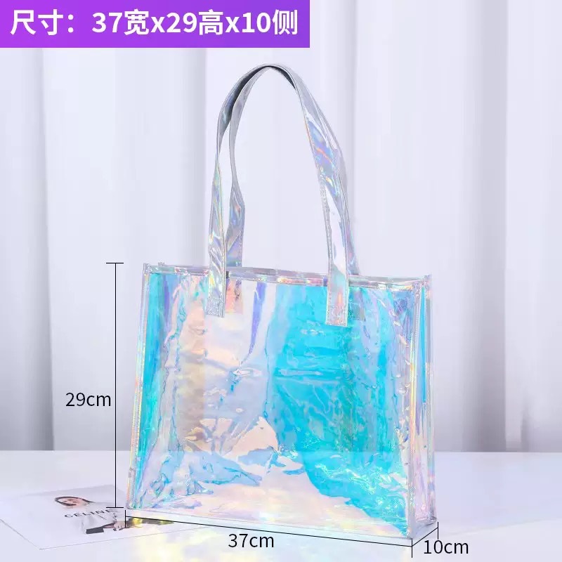 PVC 레이저 가방 사용자 정의 TPU 심포니 쇼핑 가방 투명 플라스틱 핸드백 어깨 화장품 젤리 가방 사용자 정의스토어 가기