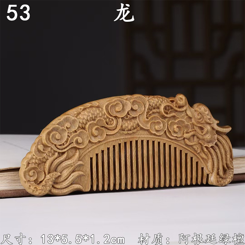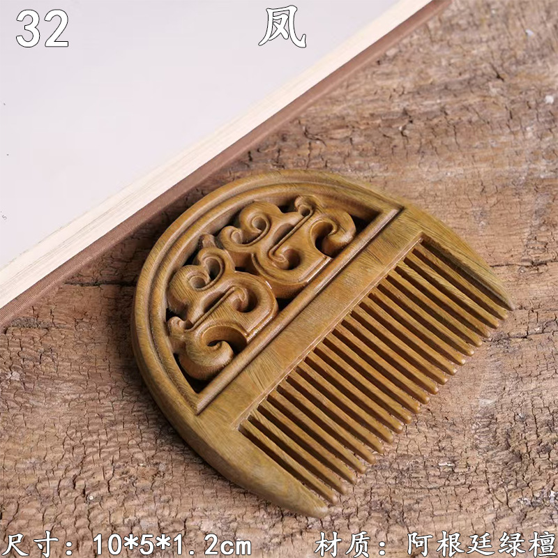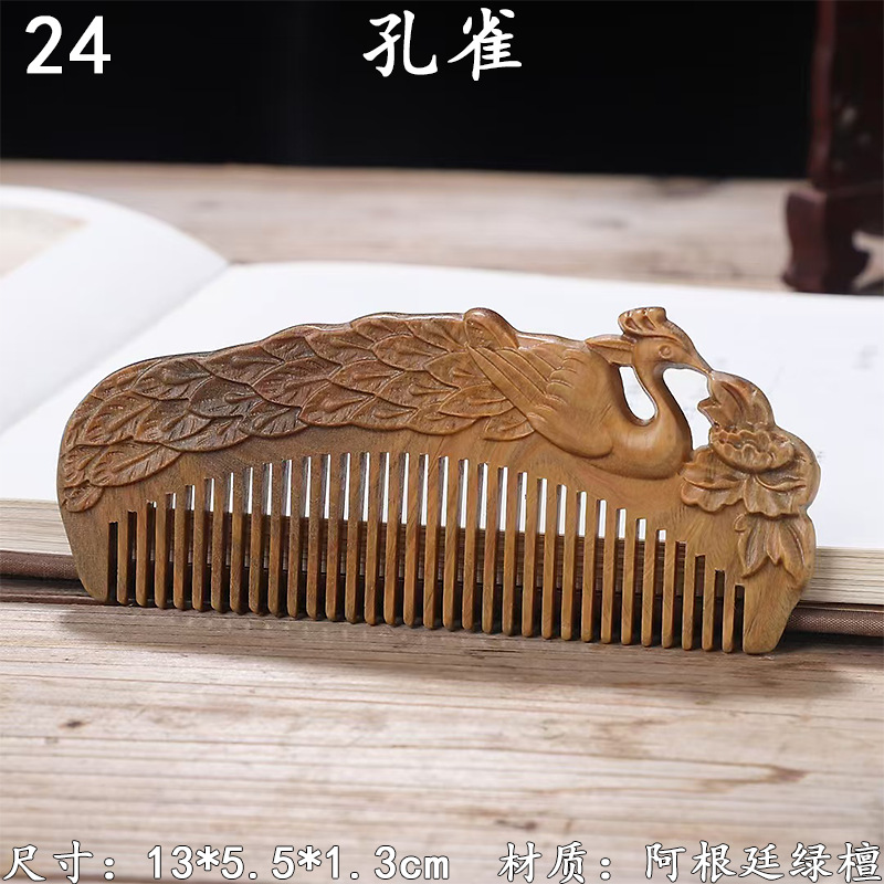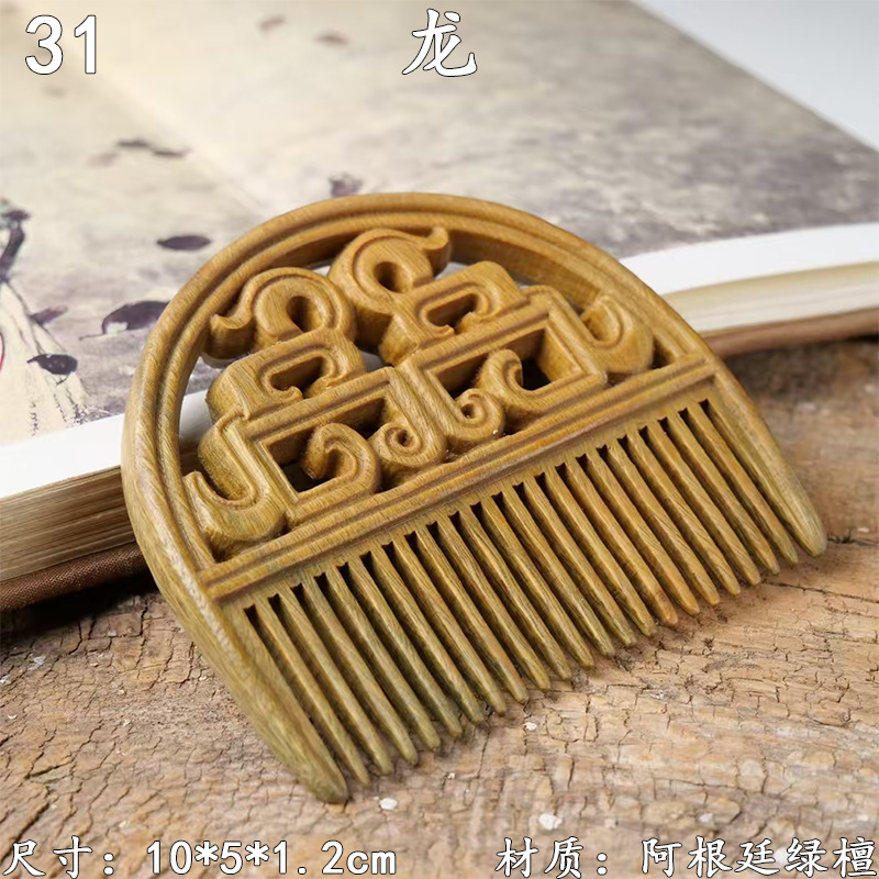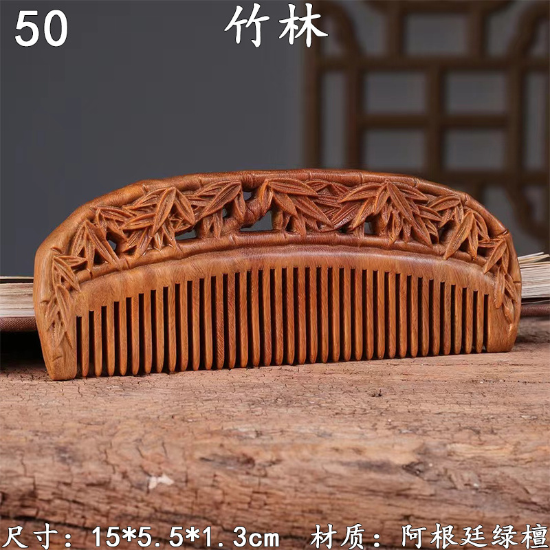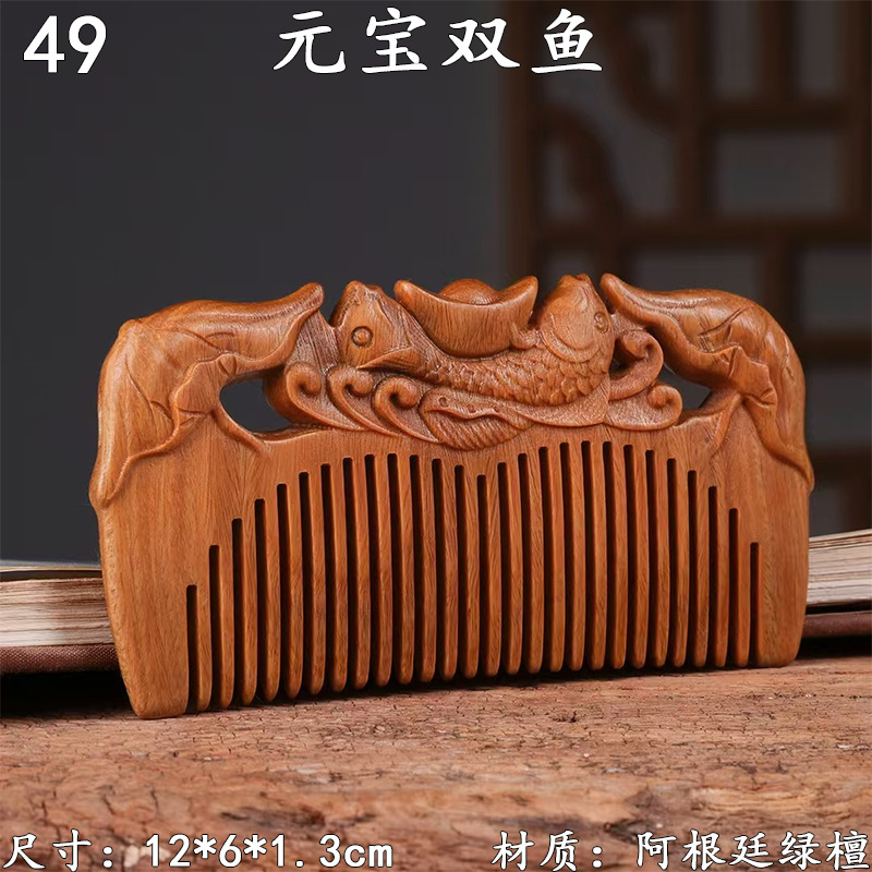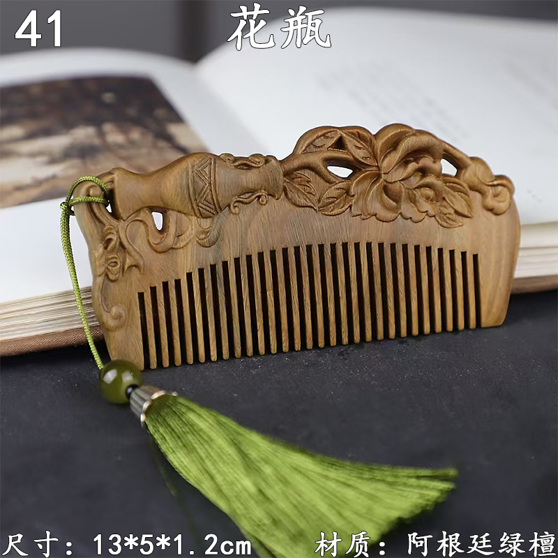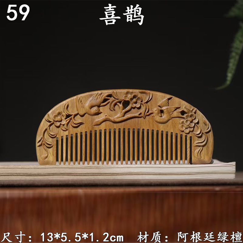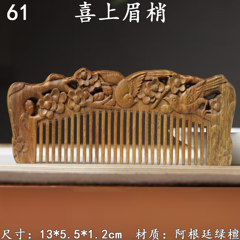墨西哥绿檀雕刻木梳双面雕刻木质工艺品化妆梳子厂家定制¥18