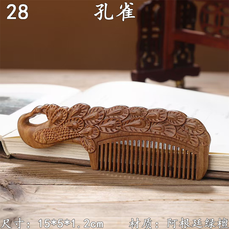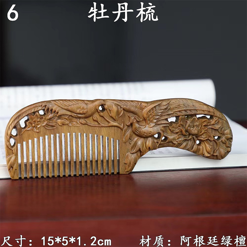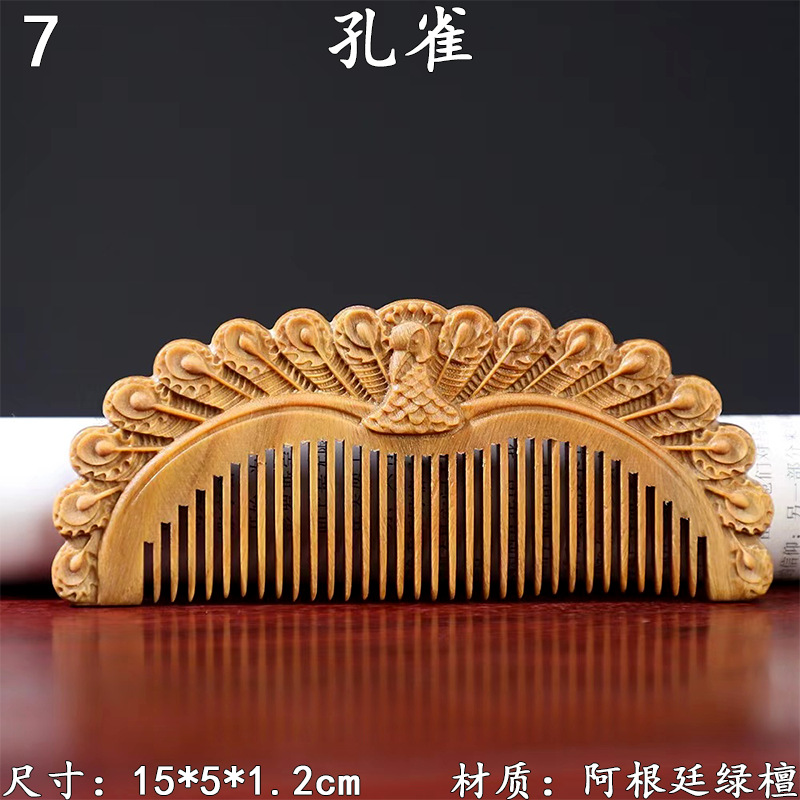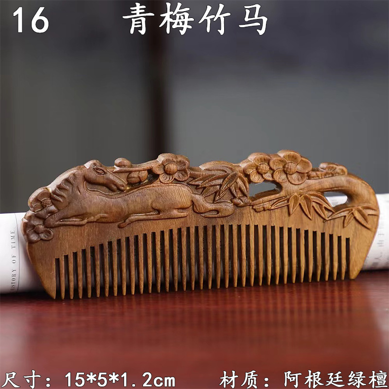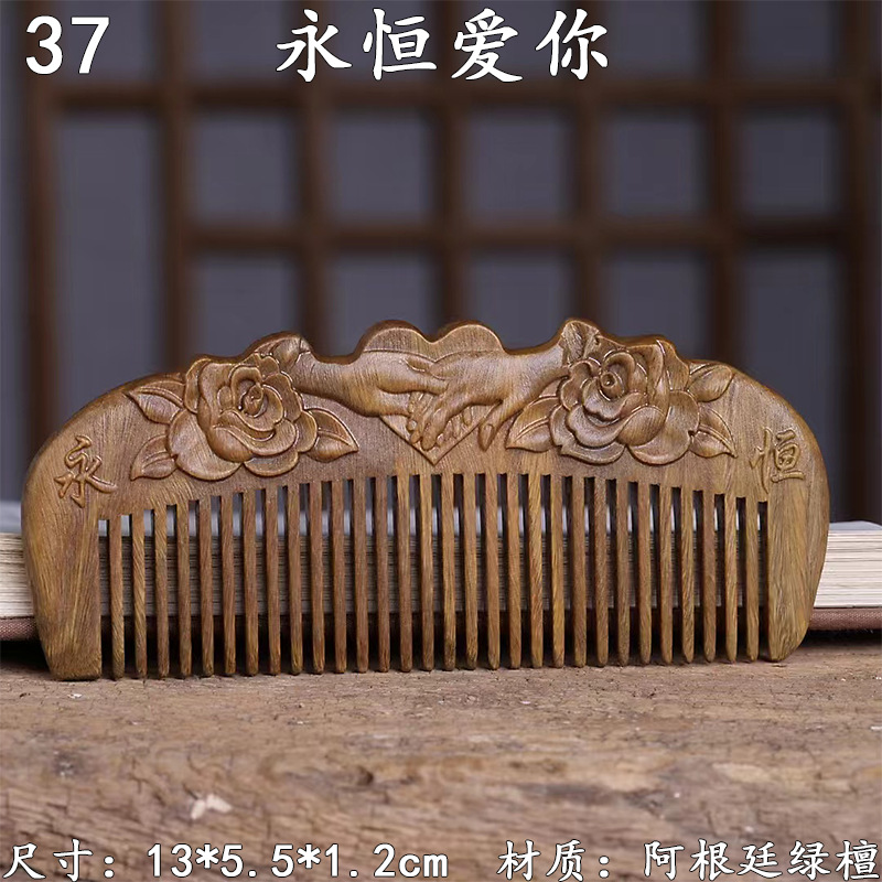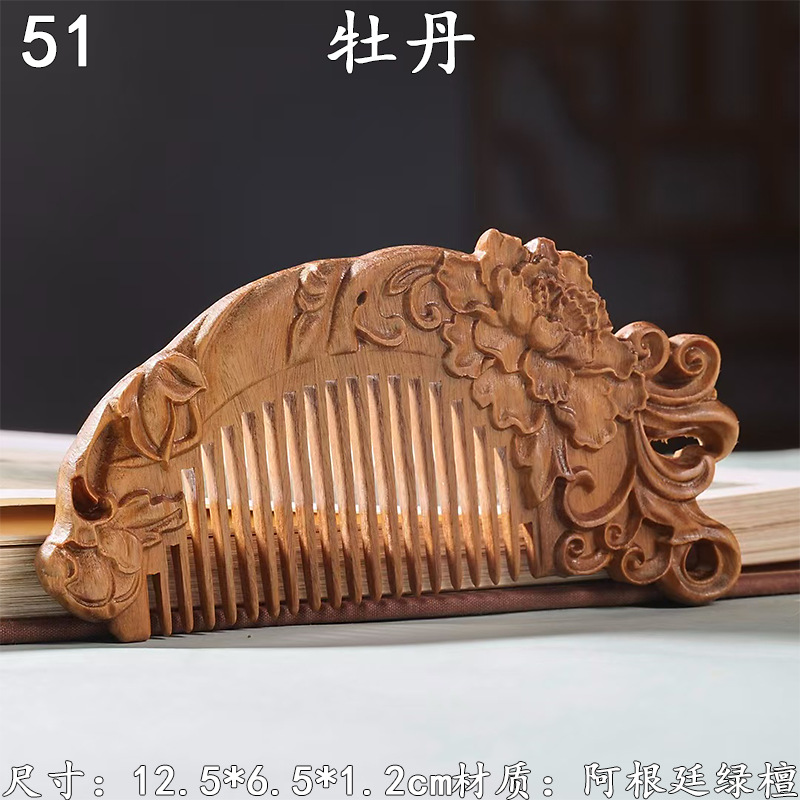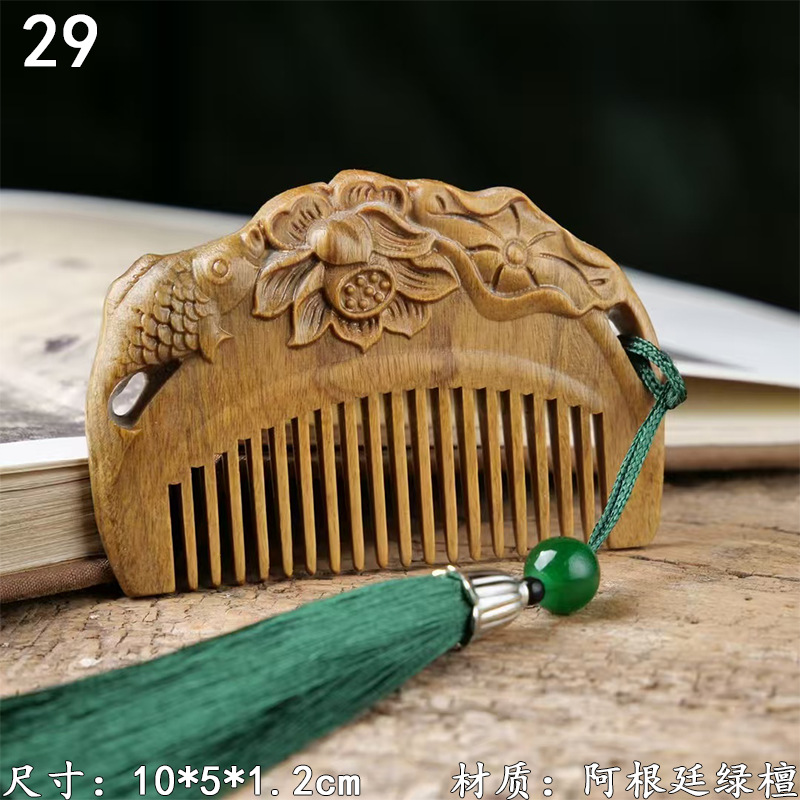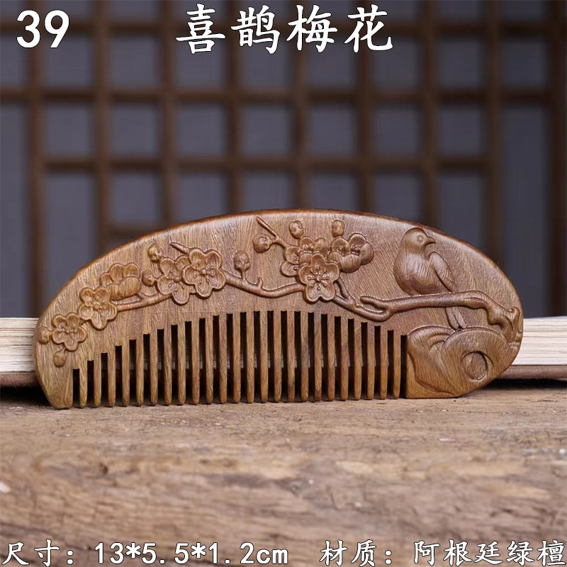 墨西哥绿檀雕刻木梳双面雕刻木质工艺品化妆梳子厂家定制¥18