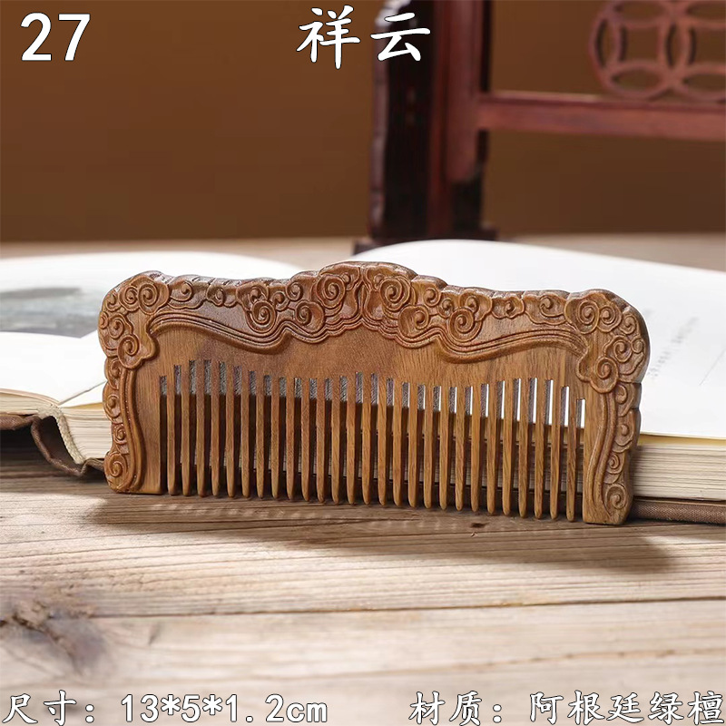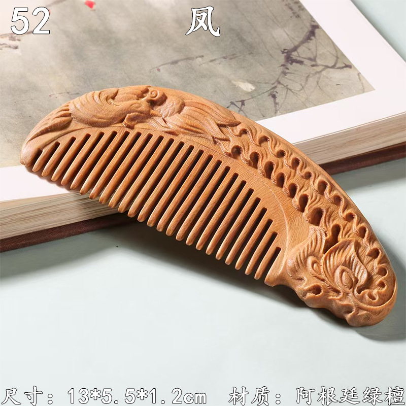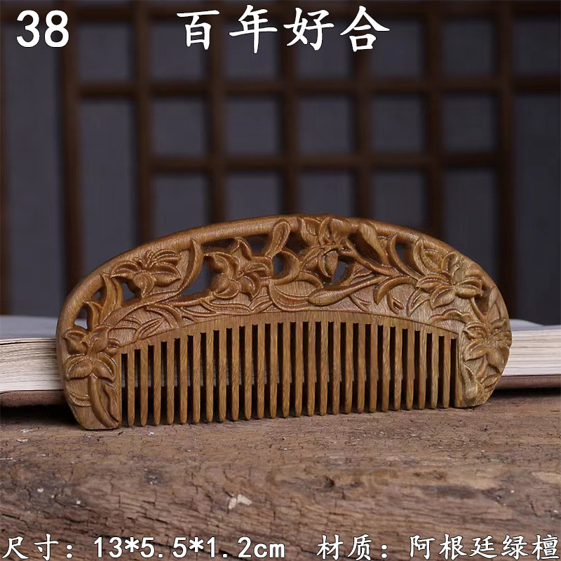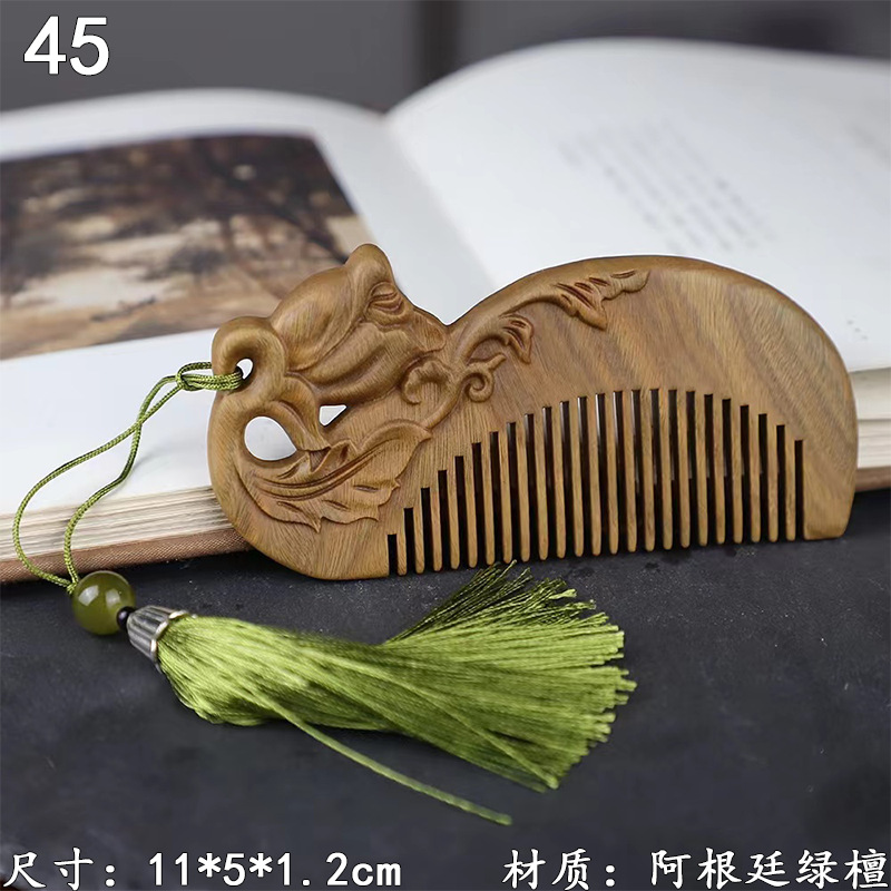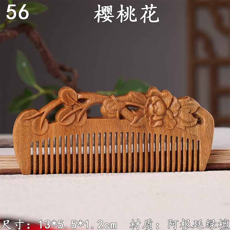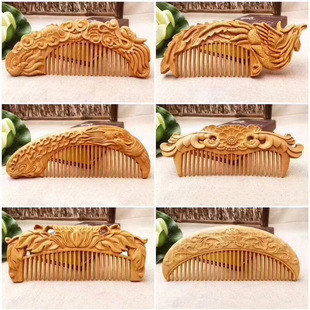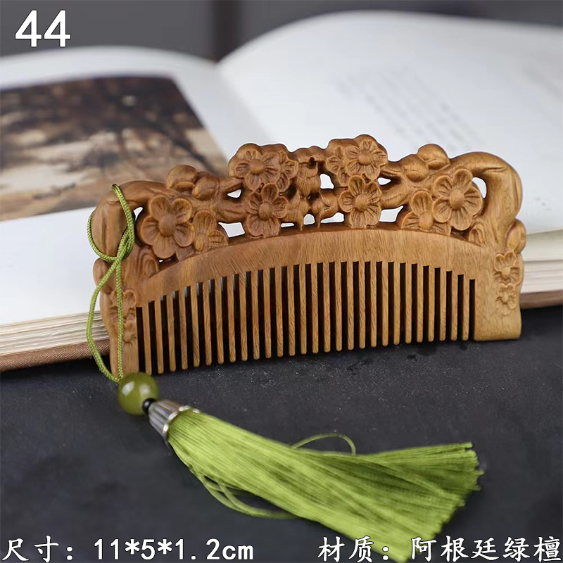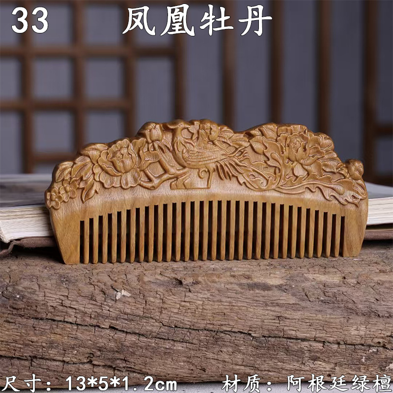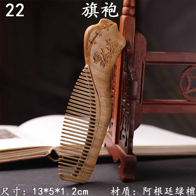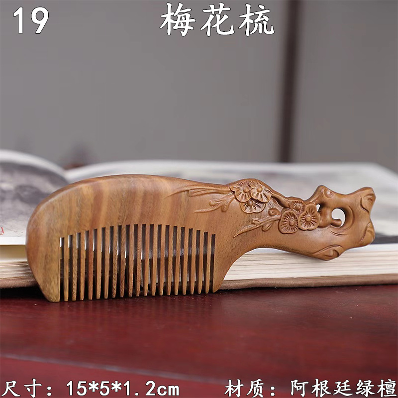 墨西哥绿檀雕刻木梳双面雕刻木质工艺品化妆梳子厂家定制¥18